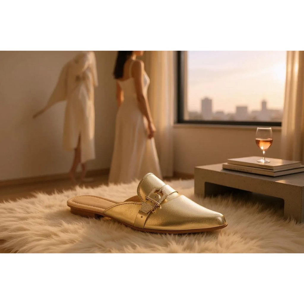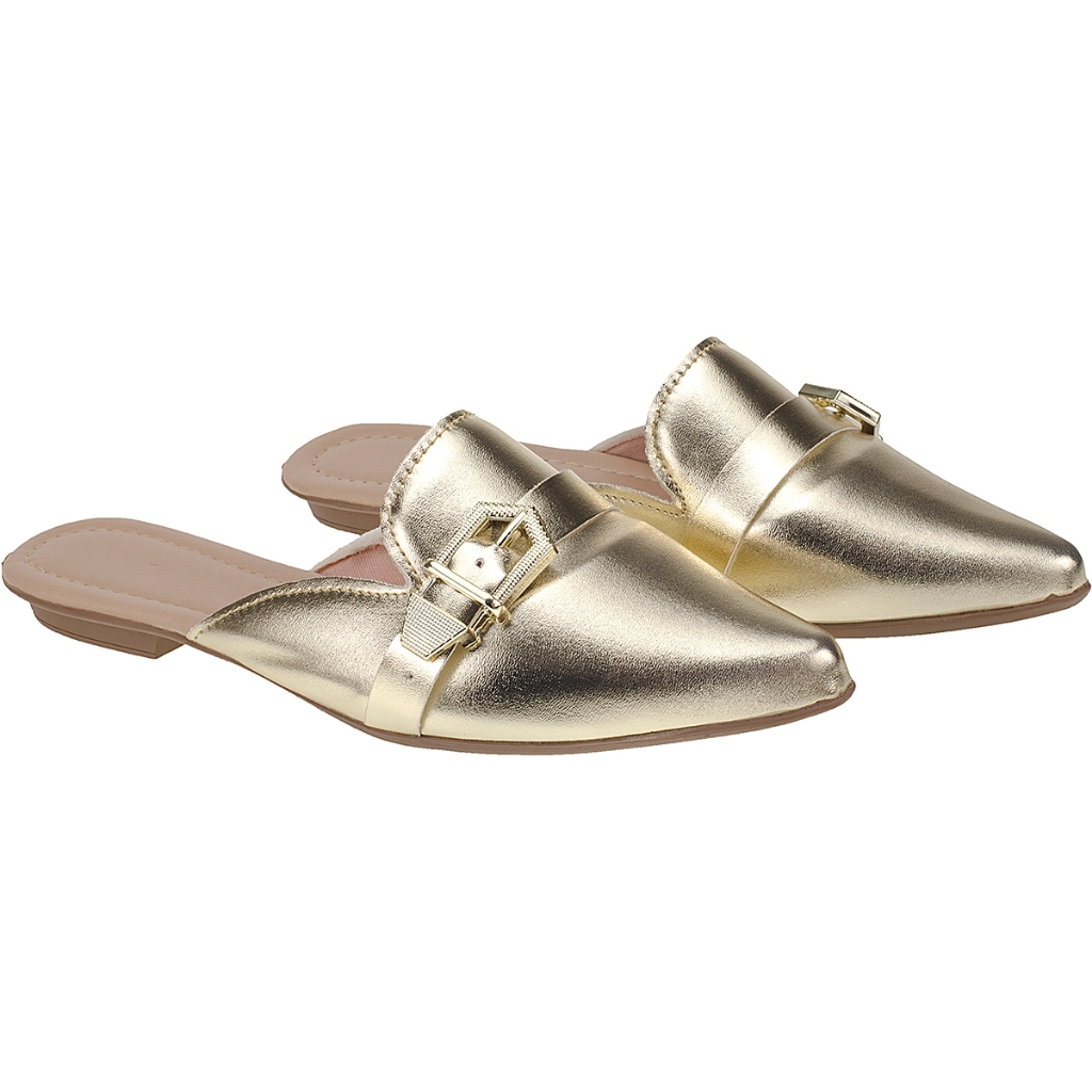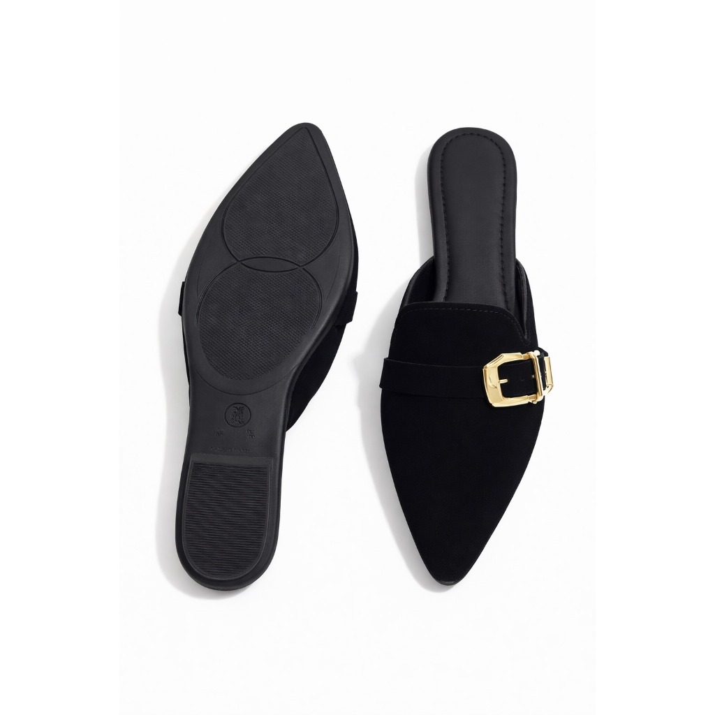 Mule Feminino Bico Fino Sapatilha Sapato Feminino Detalhes Metalicos de Fivelas Sándalia Feminina Mule Estilo Tamanco