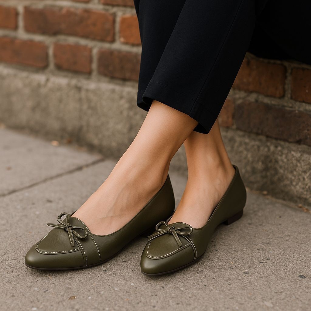 Sapatilha Feminina Bico Fino Napa Sapato Feminino Calçados Rasteira Enfeite com Elegante Nó Borboleta do 34 Ao 41
