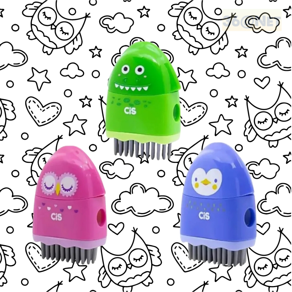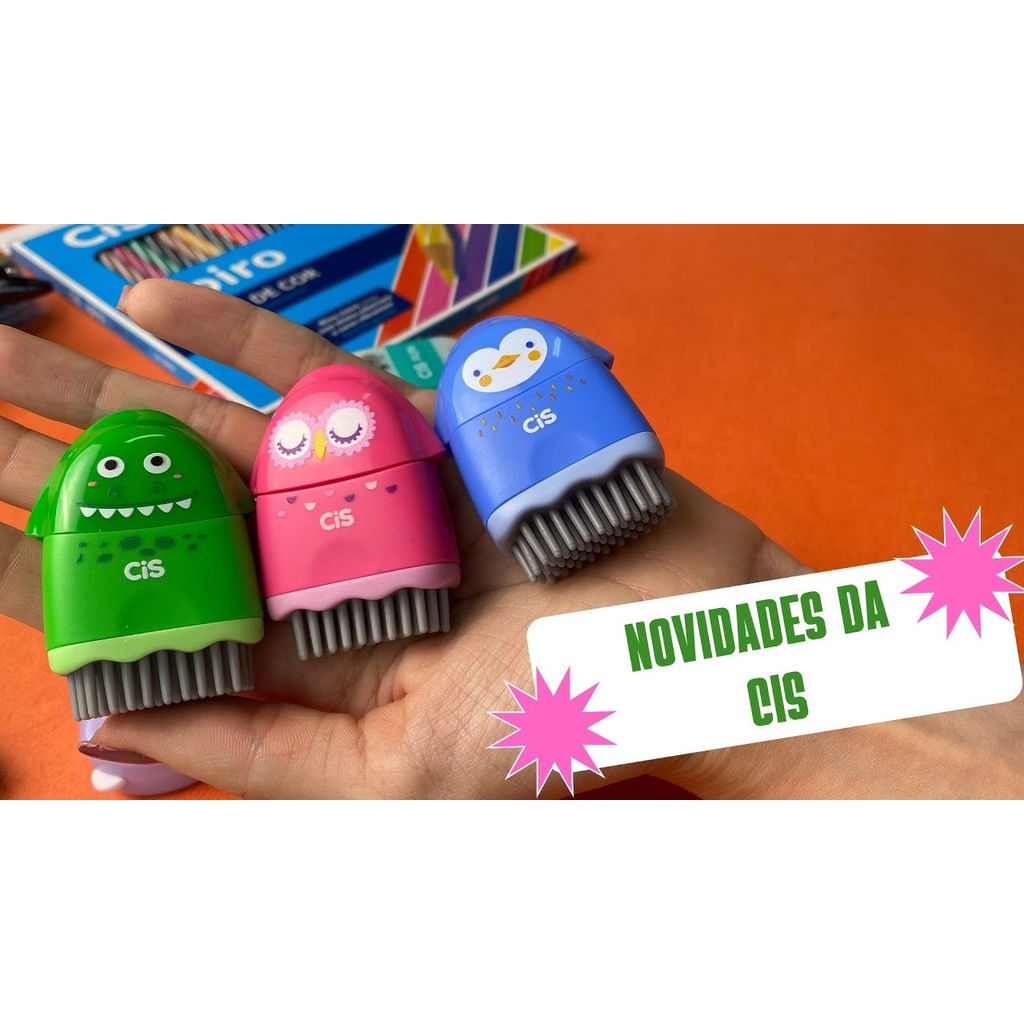 Apontador Escolar Fofo com Depósito 3 em 1 Apontador Borracha Vassourinha Criatic Cis