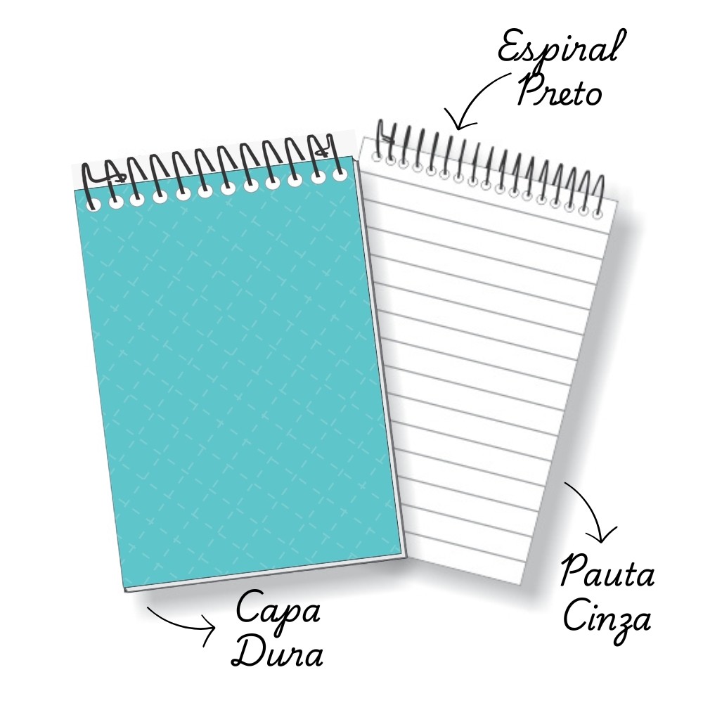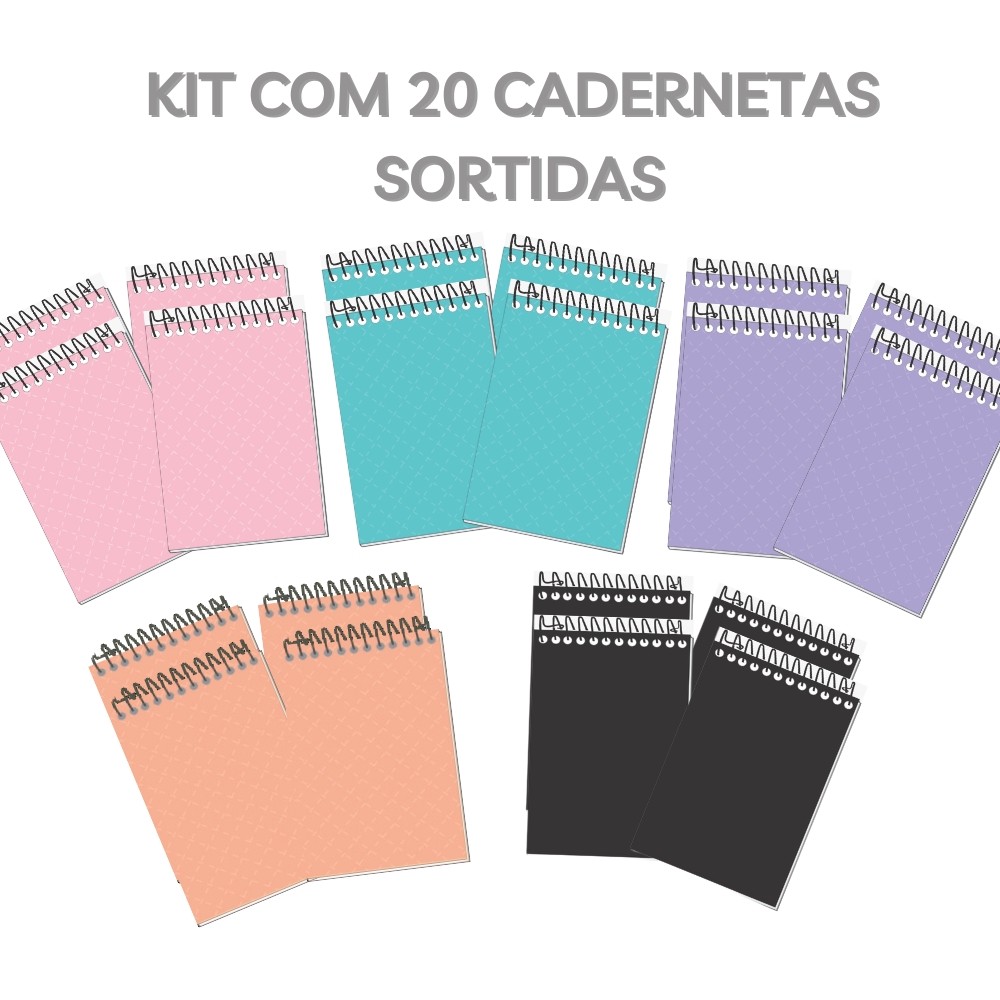 CADERNETA DE BOLSO KIT COM 10 UNIDADES CORES ÚNICAS OU SORTIDAS