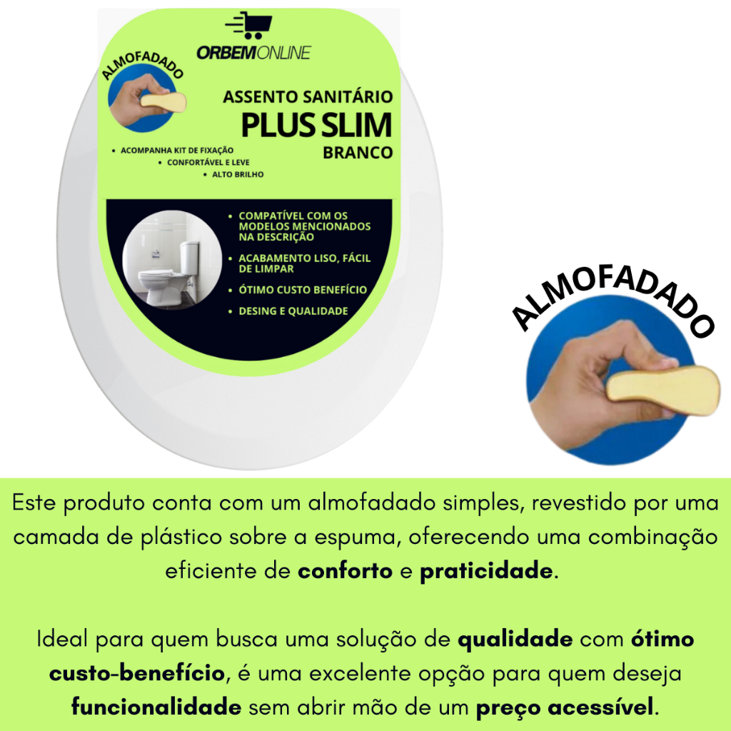 Assento Sanitario Almofadado Basico Oval Universal Plus Slim Metasul Original