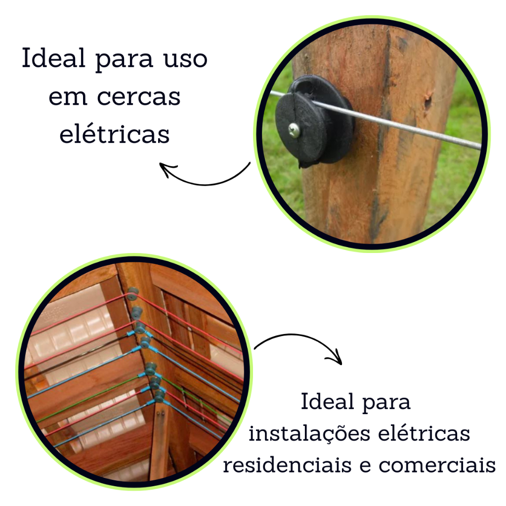 Isolador Roldana 200un Com Prego Para Cerca Elétrica 30x30mm