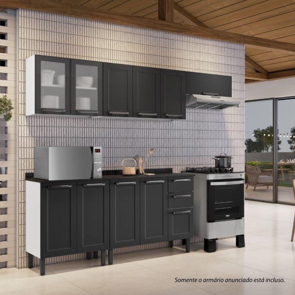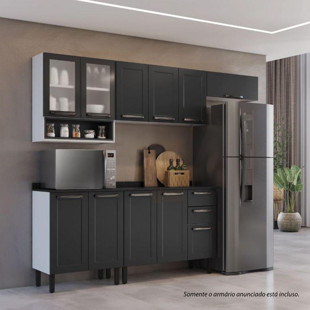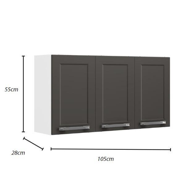 Conjunto 2 Armários de Cozinha Aéreos Itatiaia Aço 3 Portas Florença Grafite/Branco
