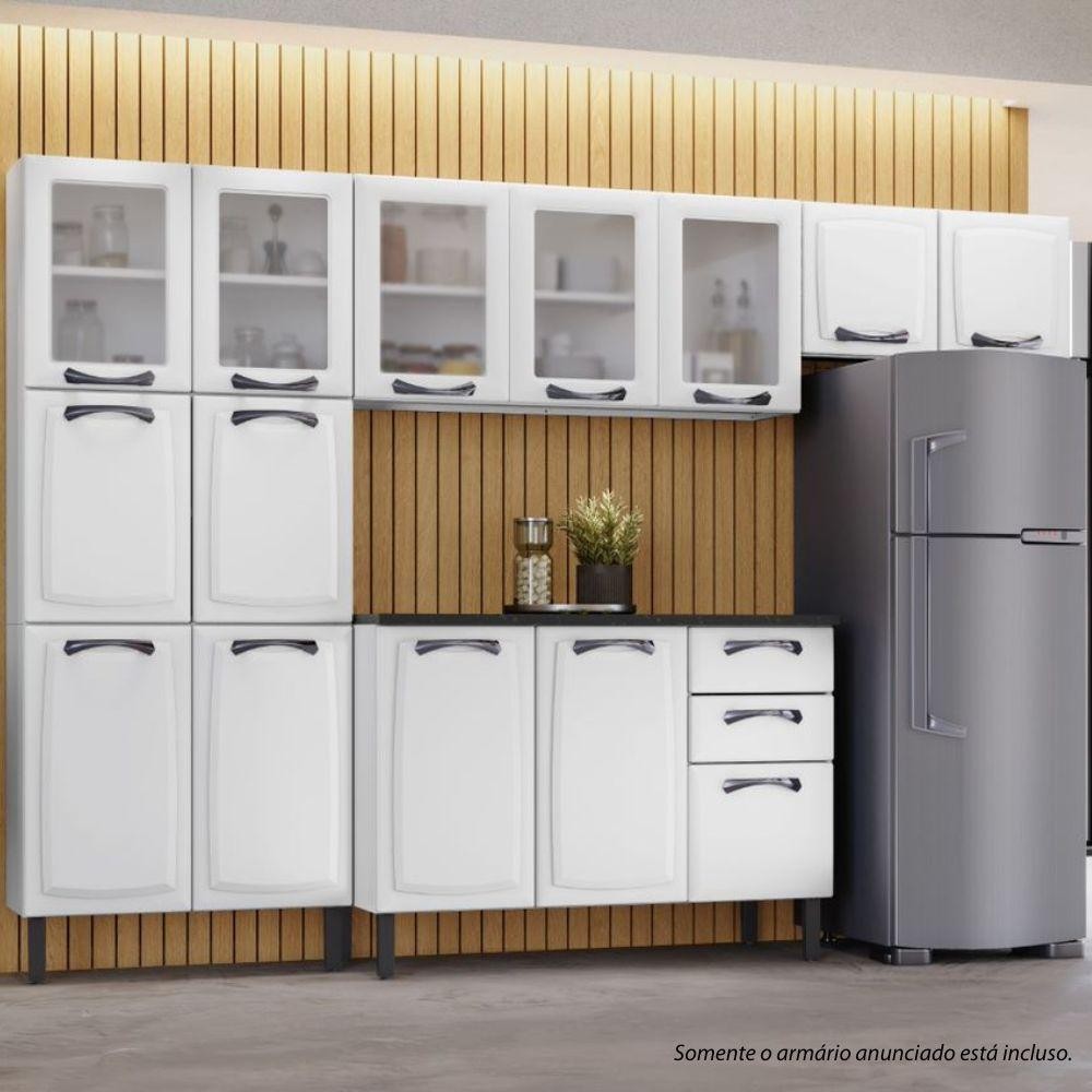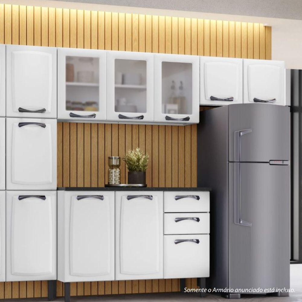Armário de Cozinha Aéreo Itatiaia Aço 3 Portas Com Vidro New Premium Branco Neve