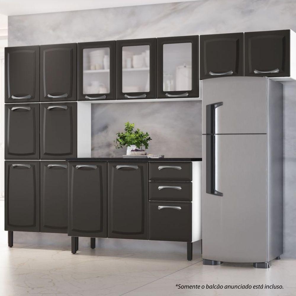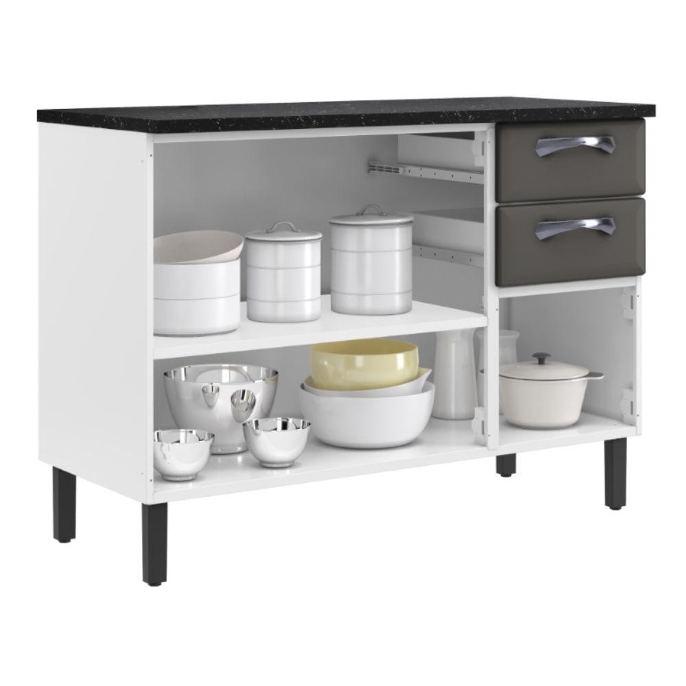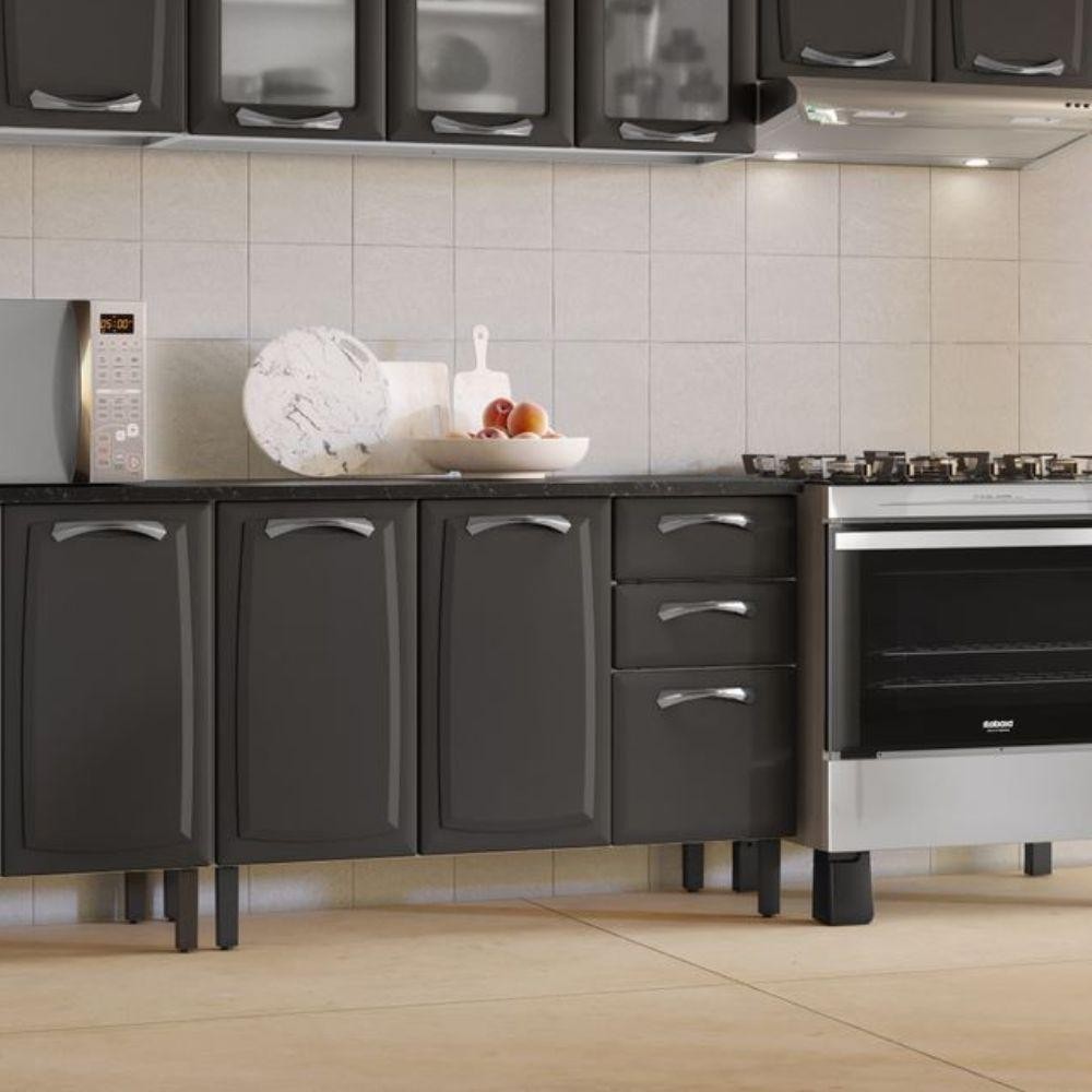 Balcão de Cozinha Itatiaia Aço 3 Portas 2 Gavetas Com Tampo New Premium Grafite/Branco