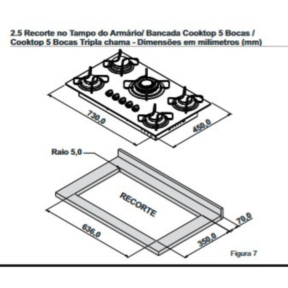 Cooktop Itatiaia Electra Plus 5 Bocas Mesa Vidro Preto Bivolt
