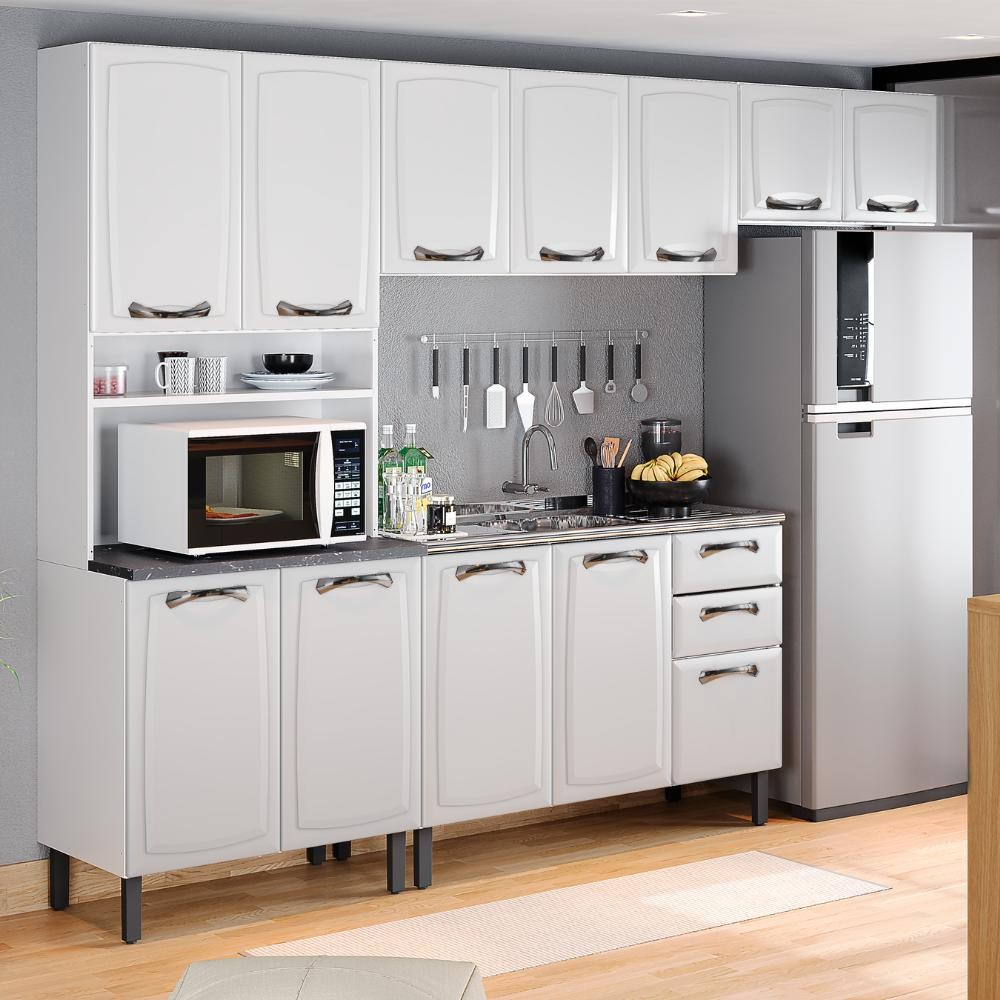 Cozinha Completa Itatiaia Aço 4 Peças 12 Portas com Nicho para Forno New Premium Branco Neve