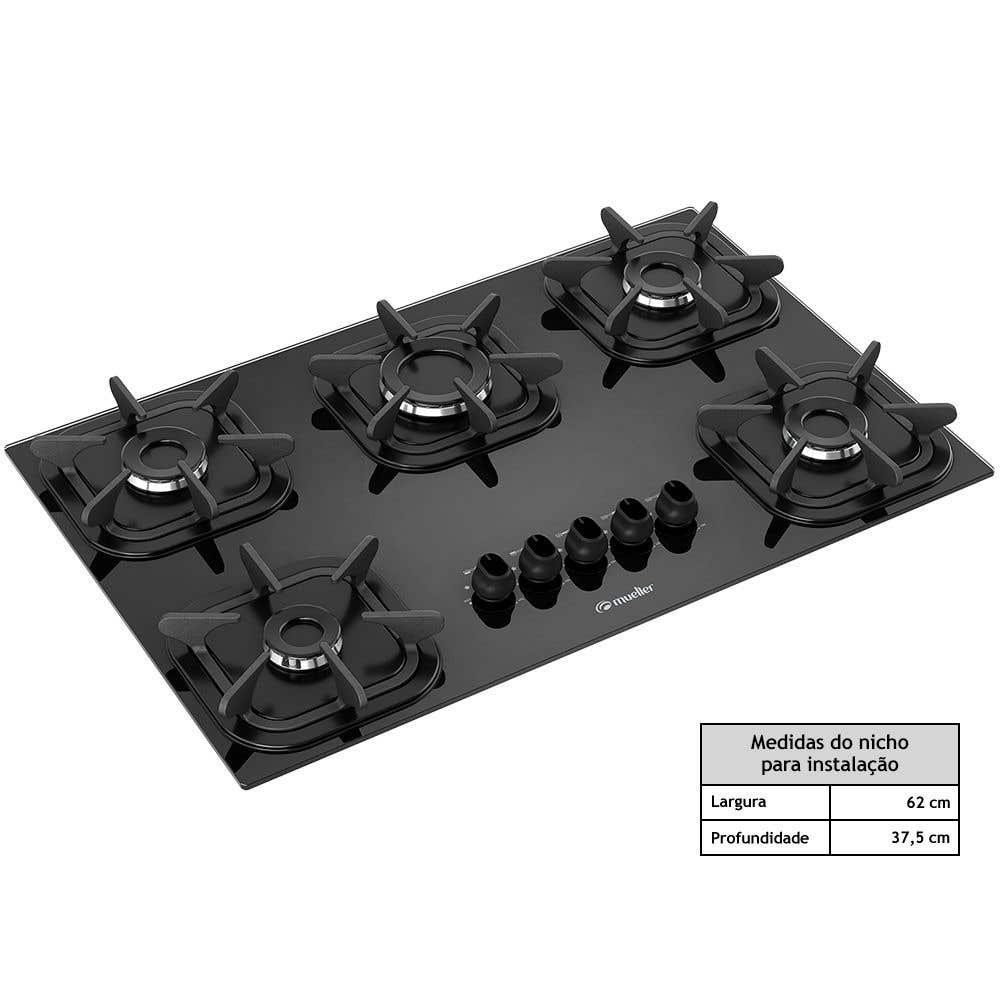 Cooktop Mueller 5 Bocas com Queimador Ultra Chama Preto Bivolt