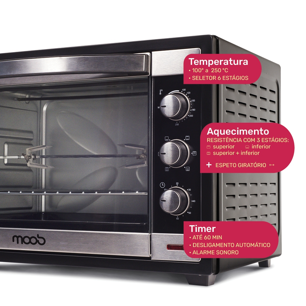 Forno Elétrico 60 Litros Moob Com Espeto Giratório e Luz Interna 127V