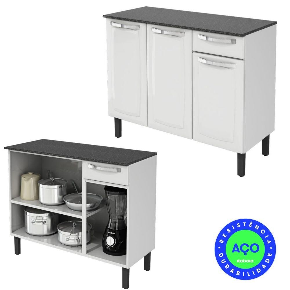 Balcão de Cozinha Itatiaia Aço Com Tampo 3 Portas 1 Gaveta Rose Branco Neve