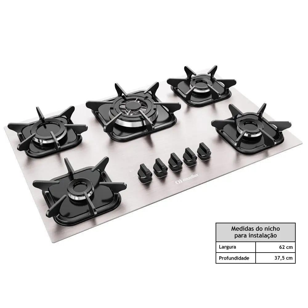 Fogão Cooktop Mueller 5 Bocas Ultra Chama Alumínio Bivolt 110V/220V MCG5BK