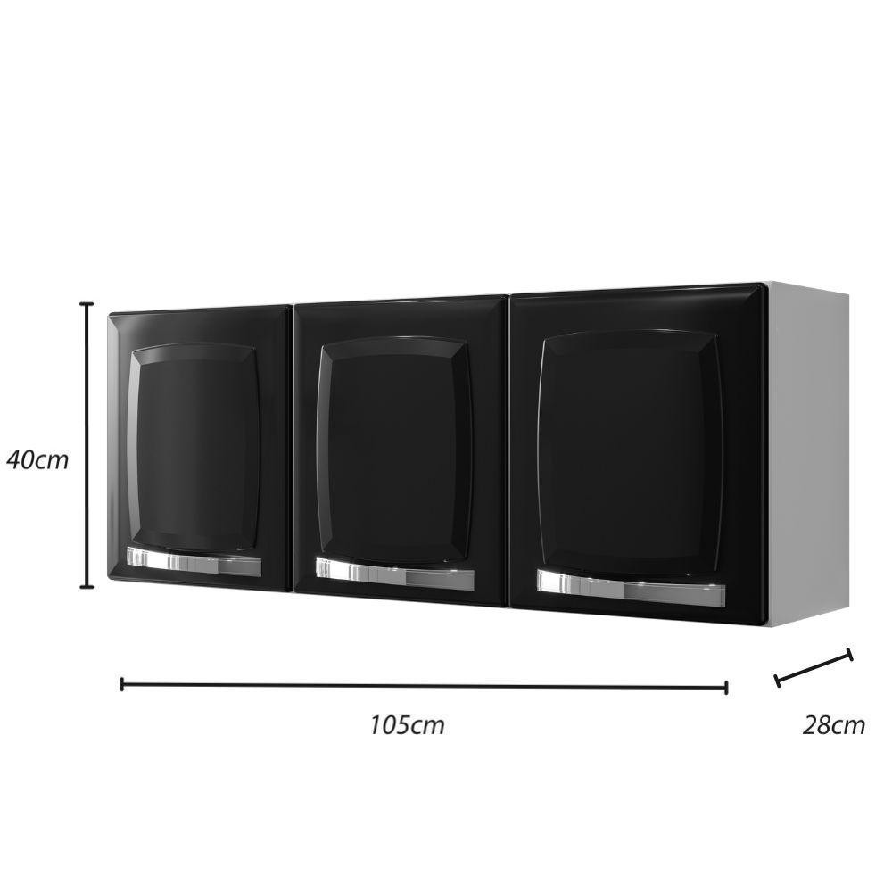 Conjunto 2 Armários de Cozinha Aéreos Itatiaia Aço 3 Portas Rose Preto