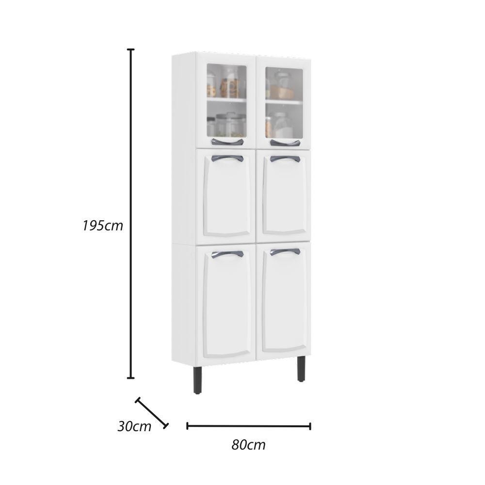 Paneleiro Cozinha Itatiaia Aço 6 Portas 2 Em Vidro New Premium Branco Neve