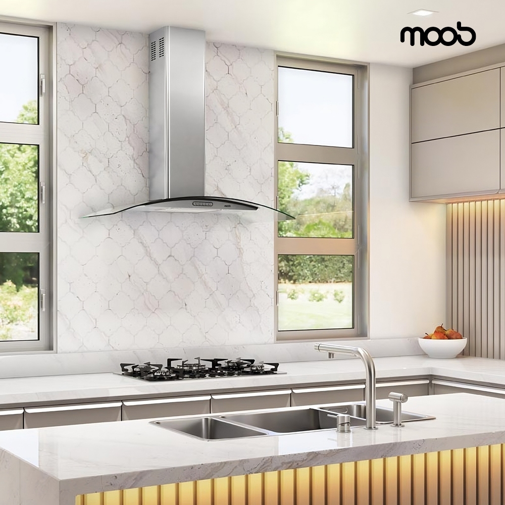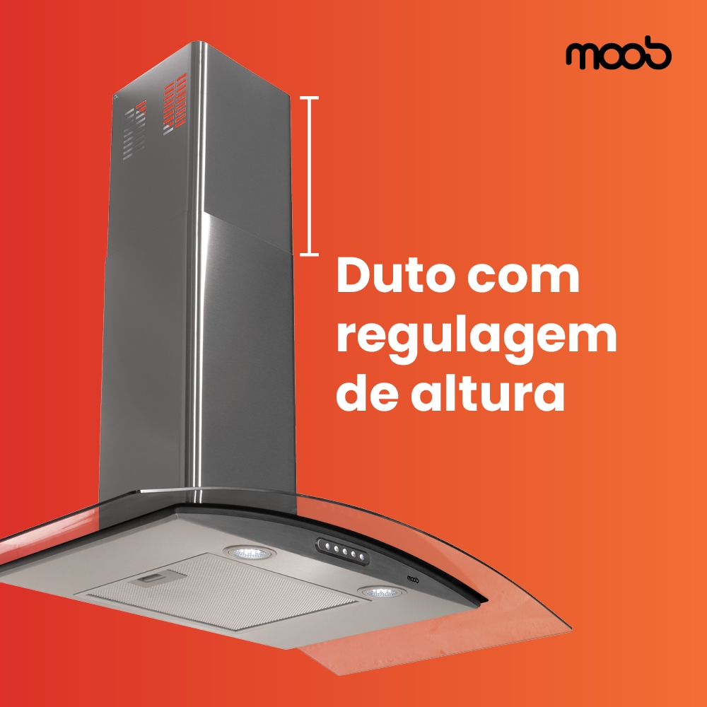 Coifa de Parede Moob 90cm Vidro Curvo Inox Slim com Duto 127V