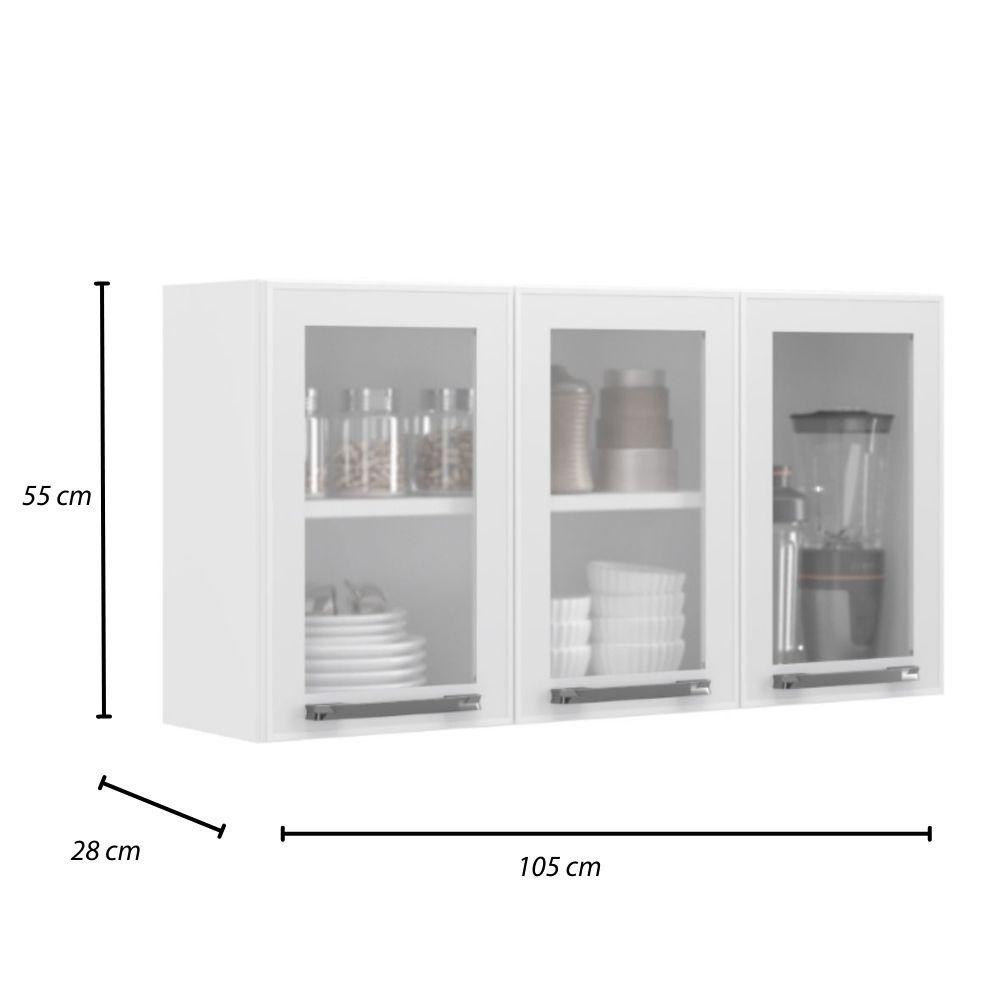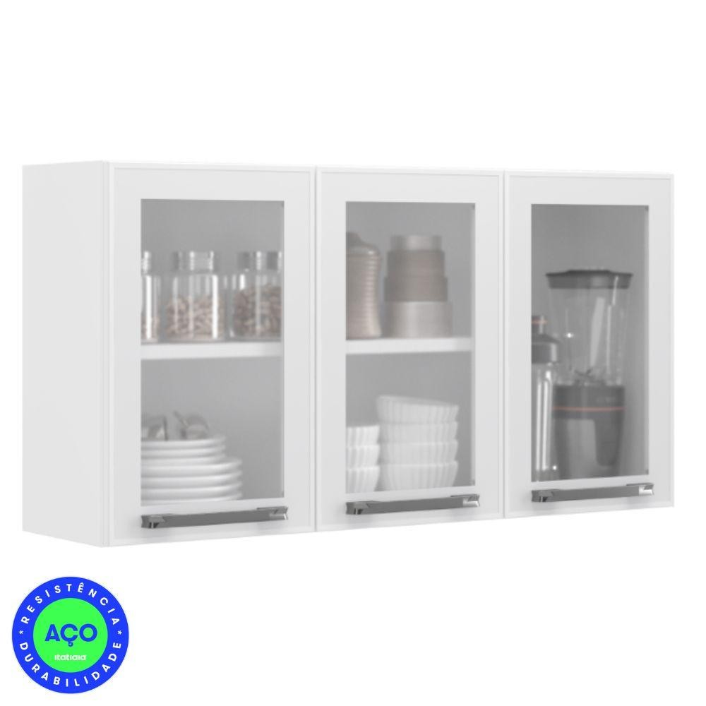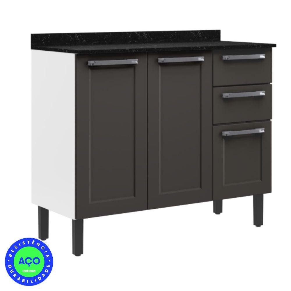 Cozinha Completa 2 Balcões 3 Armários Suspensos Itatiaia Aço Florença Branco/Grafite