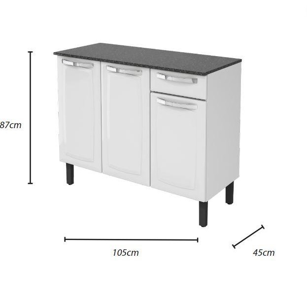 Balcão Cozinha Itatiaia Rose 3 Portas 1 Gaveta Branco IG3G1-105