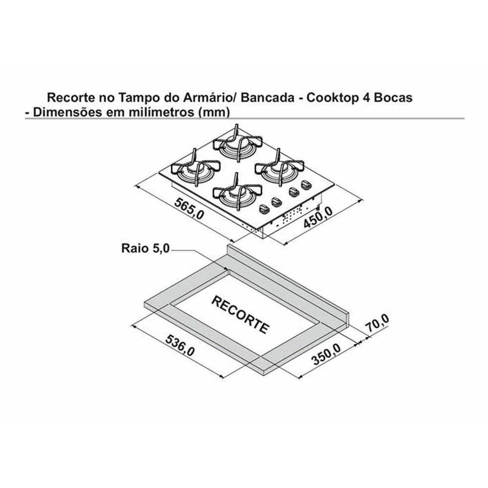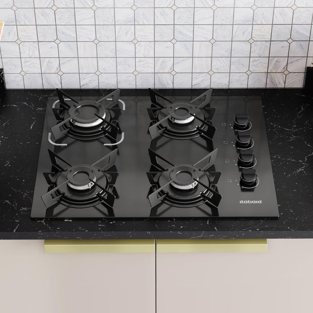 Cooktop Itatiaia Electra 4 Bocas Mesa Vidro Temperado Acendimento Superautomático Preto Bivolt