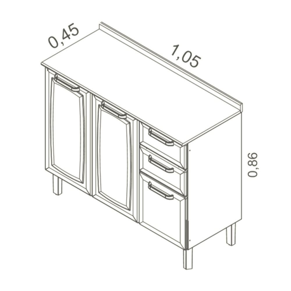 Balcão Cozinha Itatiaia Luce 3 Portas 2 Gavetas Branco IG3G2-105