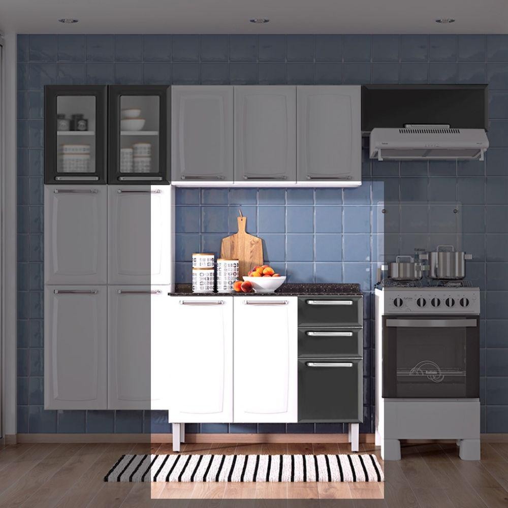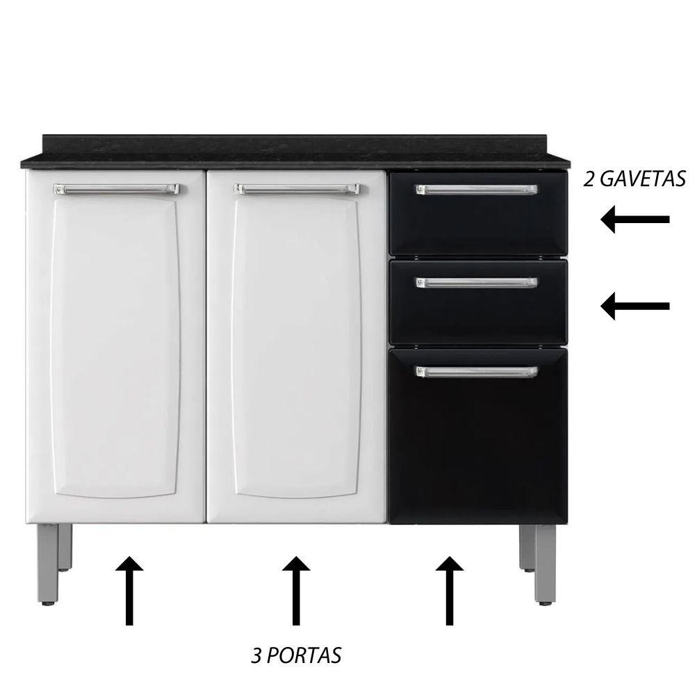 Balcão Cozinha Itatiaia Luce 3 Portas 2 Gavetas Branco/Preto IG3G2-105