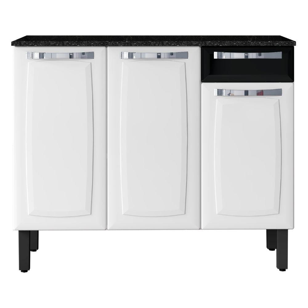 Balcão de Cozinha Itatiaia Rose Aço Com Tampo 3 Portas 1 Gaveta Branco/Preto