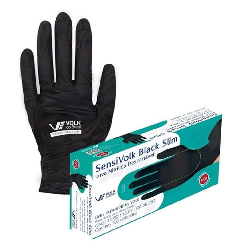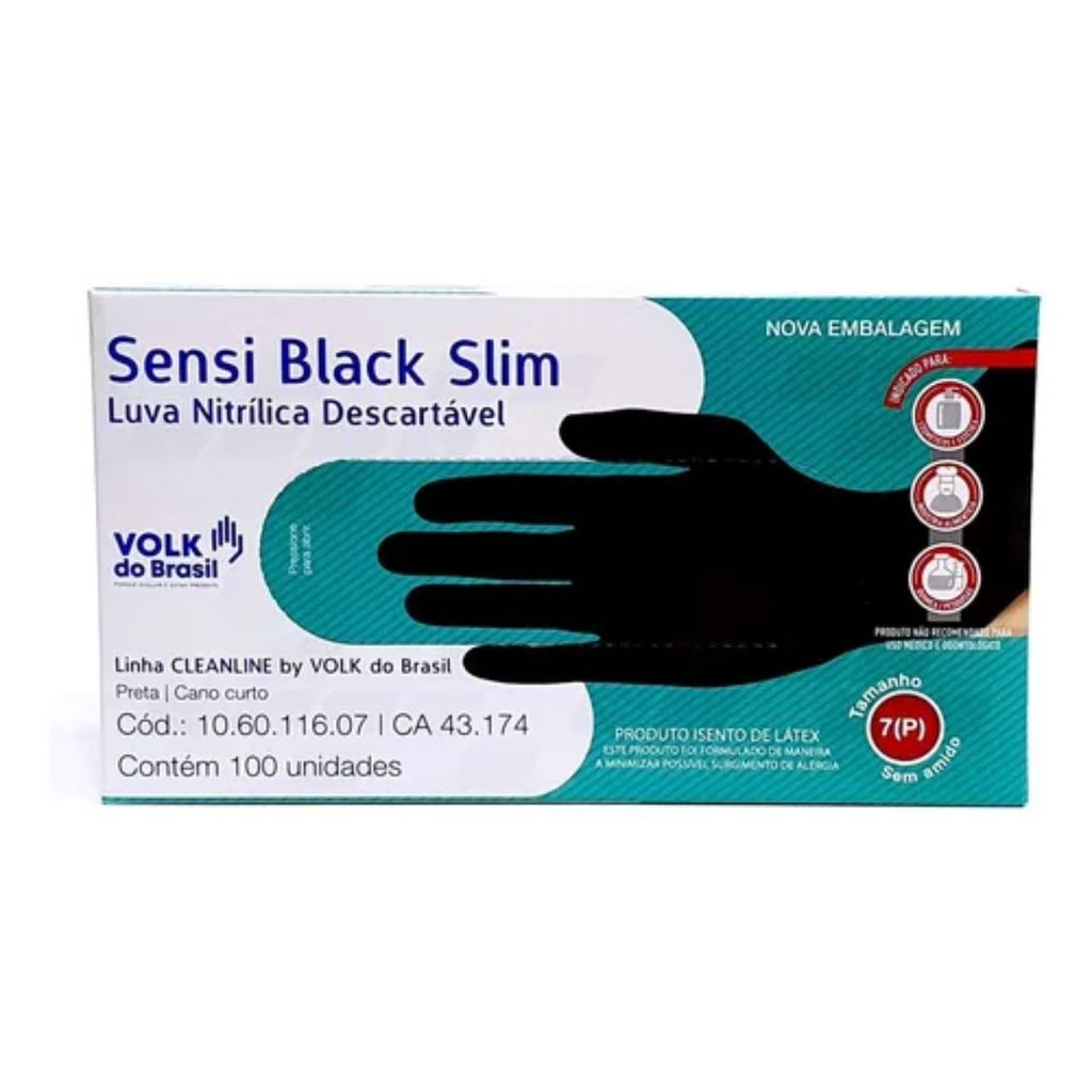 Luva de Segurança Nitrílica Volk Sensi Black Slim c/100 un Tamanho P Proteção Quimica