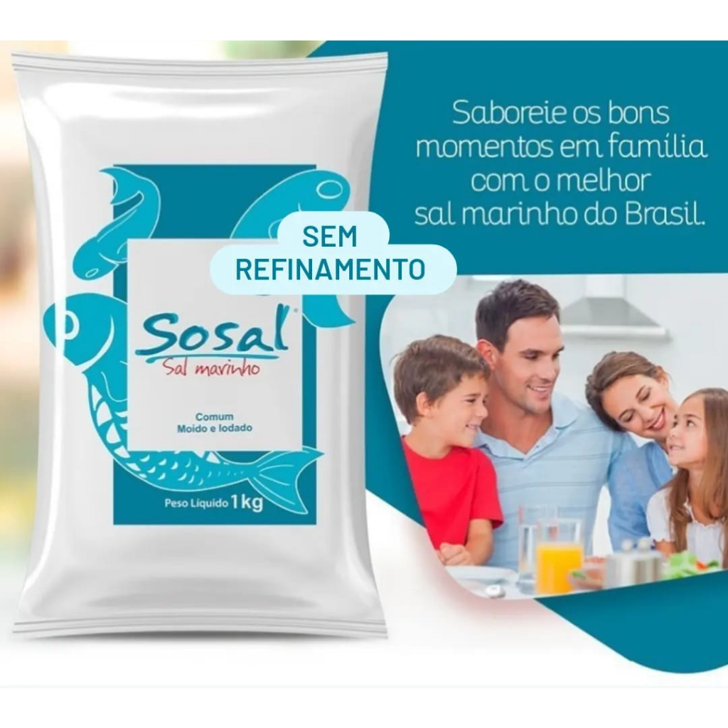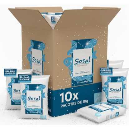 Caixa com 10 pacotes de Sal Marinho Moído 1 kg cada - Sal de Mossoró Sem Refinamento Sosal