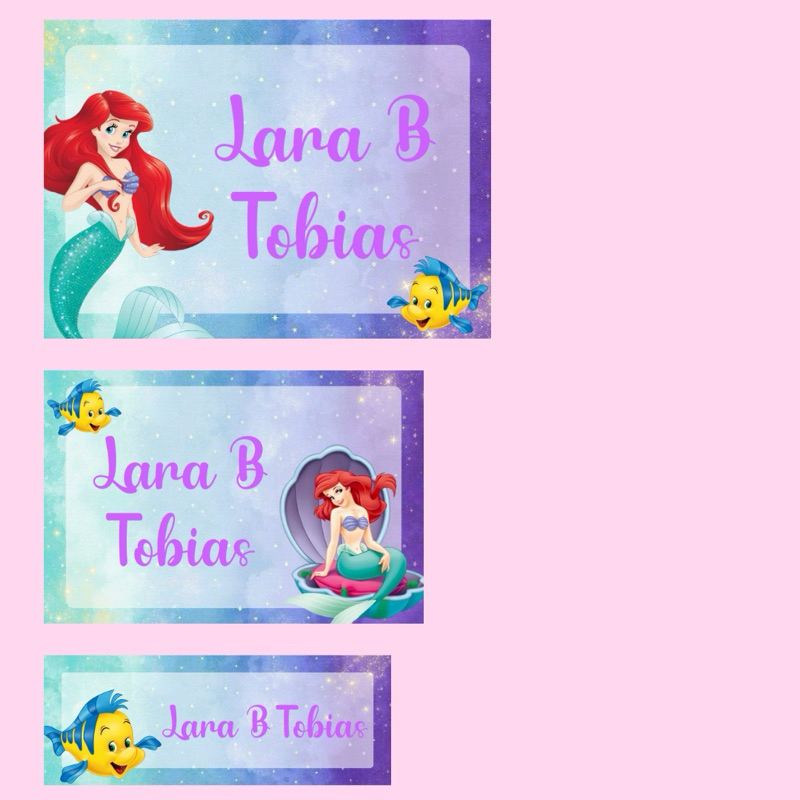 etiqueta escolar personalizável Ariel/ pequena sereia