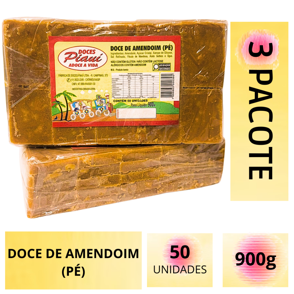 Pacote Doce de Amendoim Caseiro (PÉ) 900g C/ 50un - Paçoca tipo Pé - Doces Piaui - Festa Junina