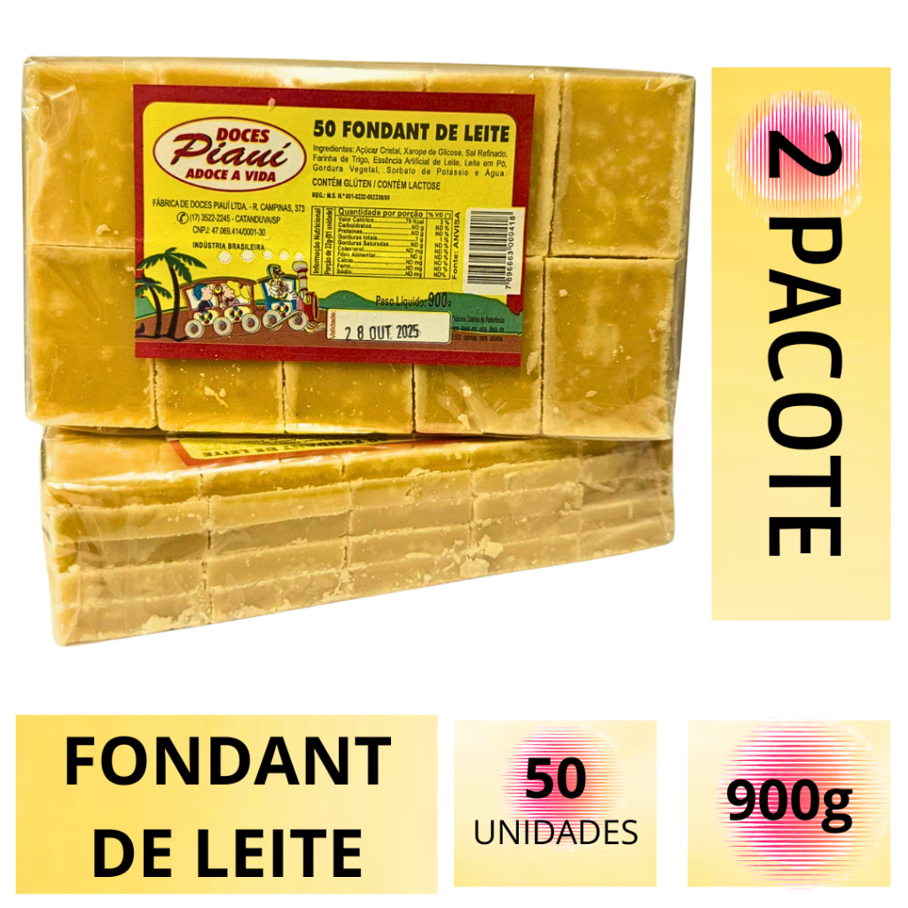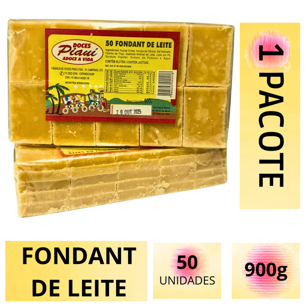 Foundant de Leite 900g c/50un – Doces Piauí – Doce de Leite Tradicional – Perfeito p/ Festa Junina
