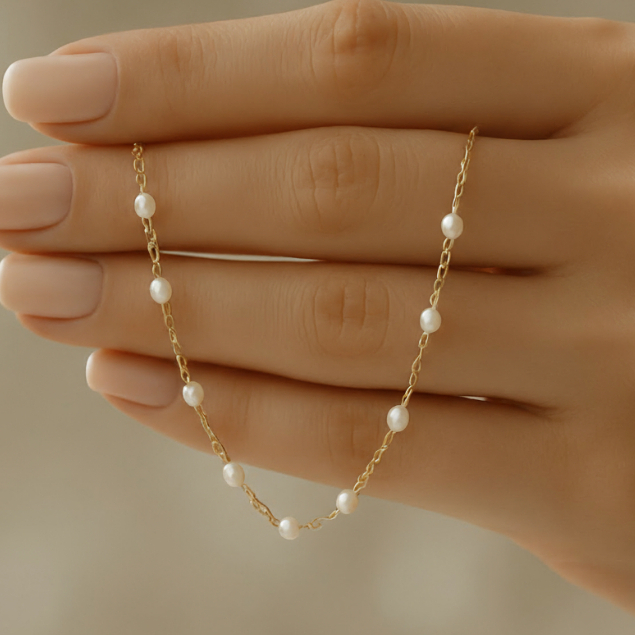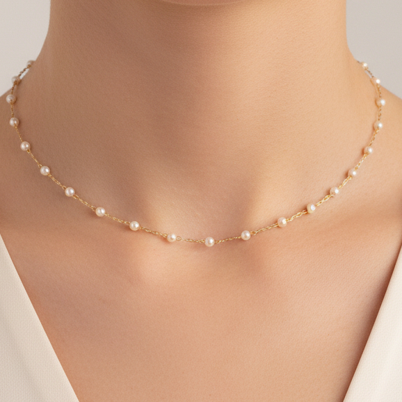 Colar Choker Mini Pérolas Banhado Ouro 18k Delicado Antialérgico Luxo