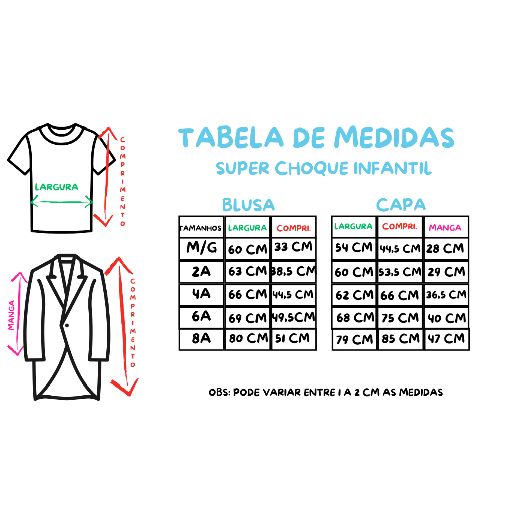 Fantasia Super Choque INFANTIL - verifique o tamanho da fantasia