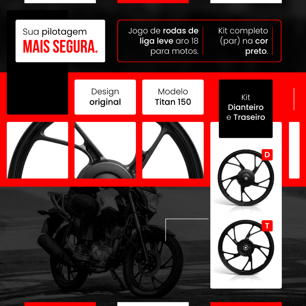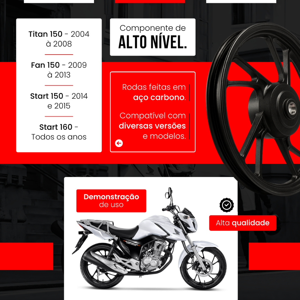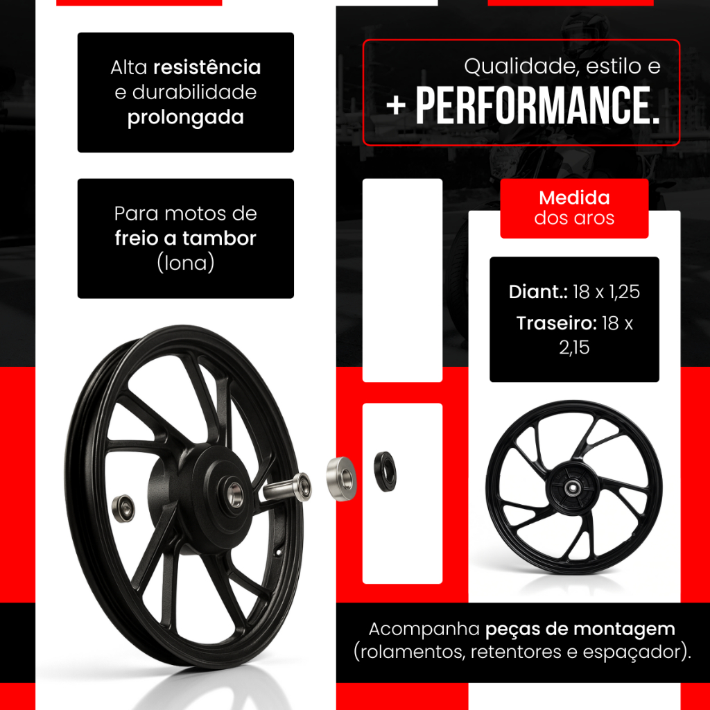 Jogo De Rodas Cg 150 Titan 150 Cg 160 Start Freio A Tambor (Lona) Pé De Galinha Cor Preto
