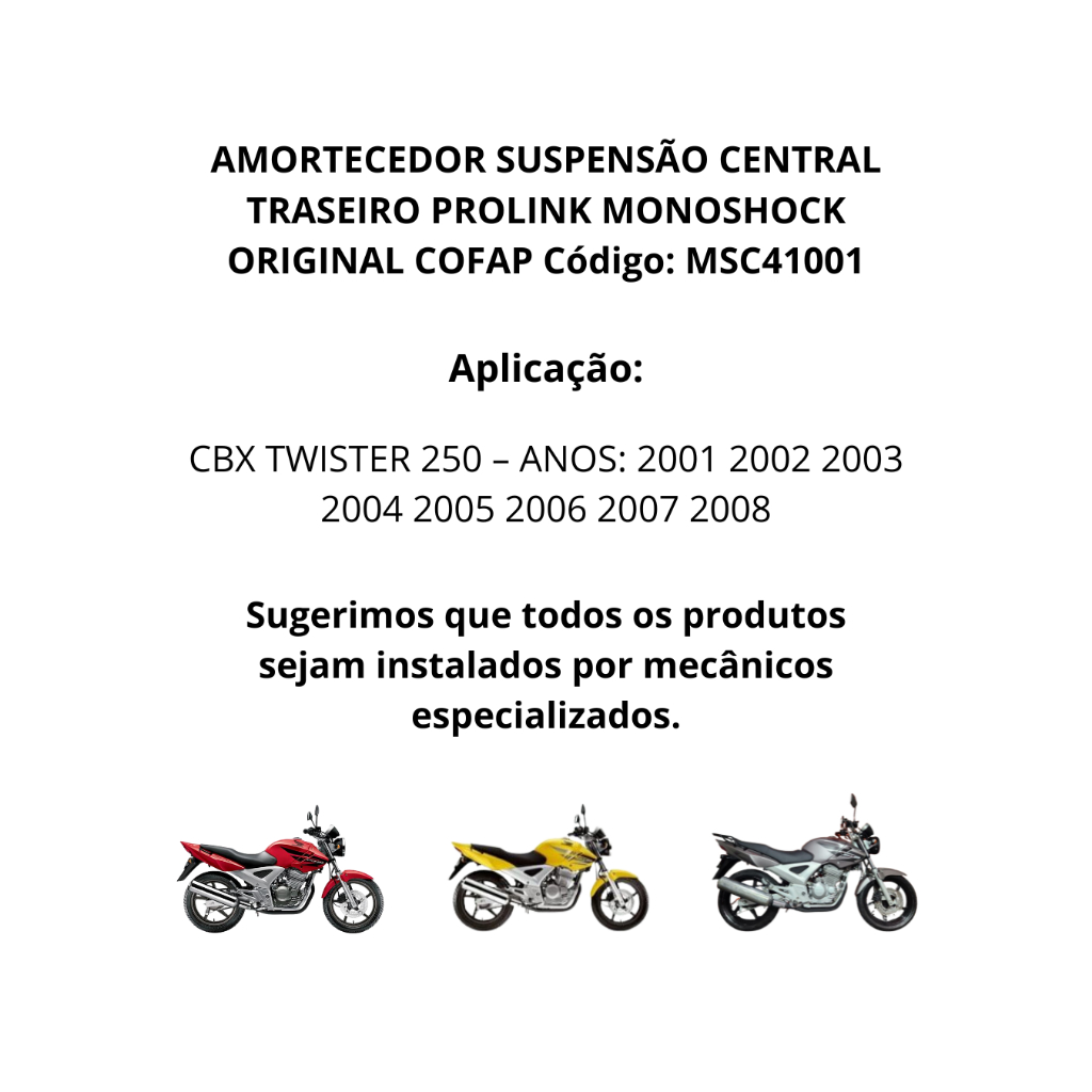 Amortecedor Suspensão Traseiro Honda CBX Twister 250 2001 2002 2003 2004 2005 2006 2007 2008 Cofap