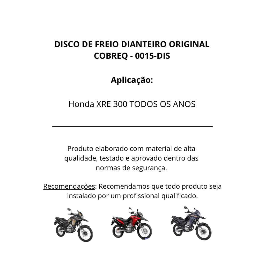 Disco de Freio Dianteiro Honda XRE 300 2010 2011 2012 2013 2014 2015 2016 2017 2018 2019 2020