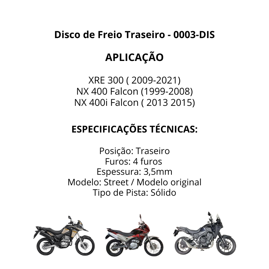 Disco de Freio Traseiro Honda Nx 400 Falcon 1999 2000 2001 2002 2003 2004 2005 2006 2007 2008 Cobreq
