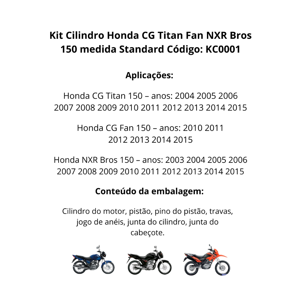 Kit Cilindro Motor Camisa Pistão Anéis Honda CG Titan Fan NXR Bros 150 de 2003 até 2015