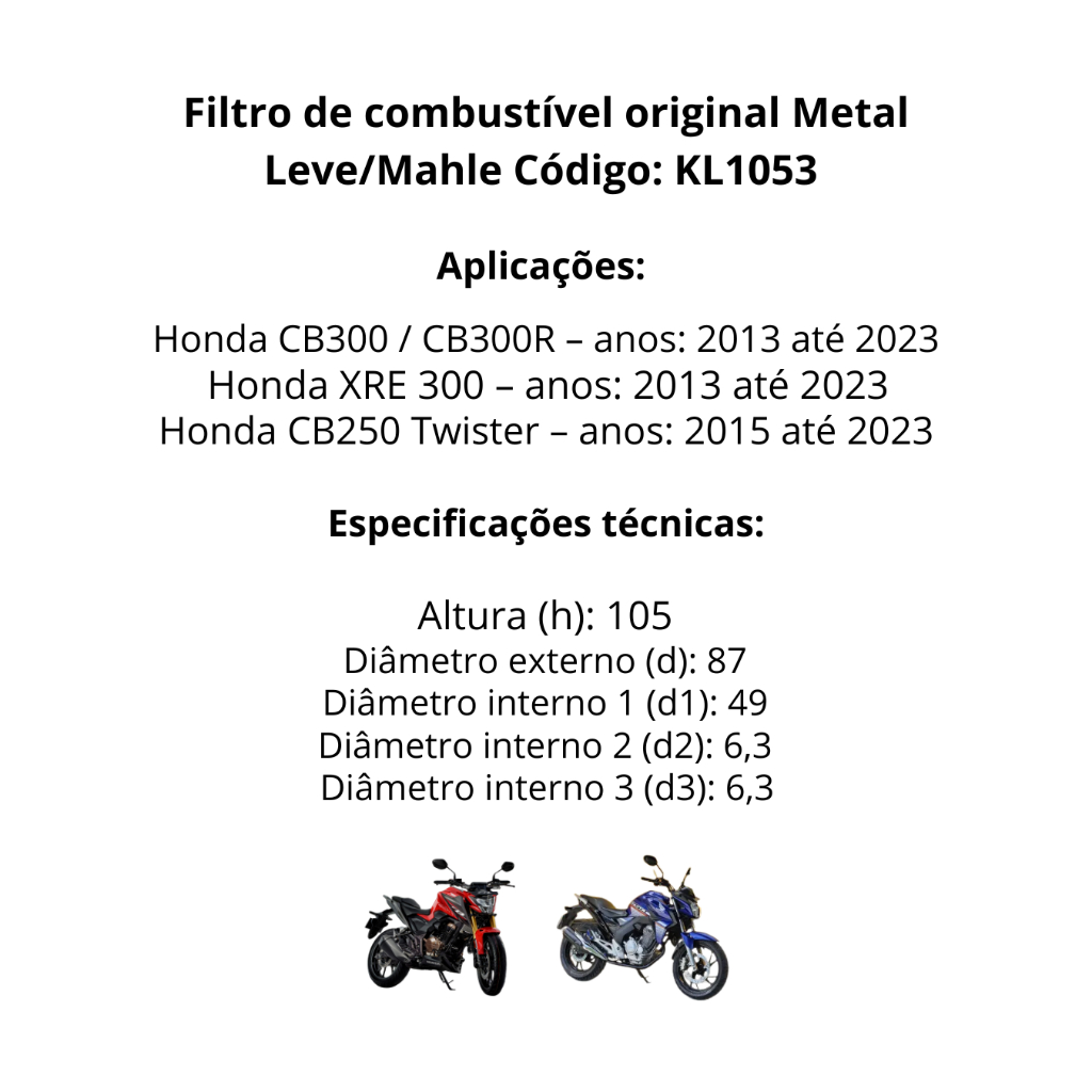 Filtro de Combustível Honda CB300 CB300R XRE 300 CB250 Twister de 2013 até 2023 Mahle