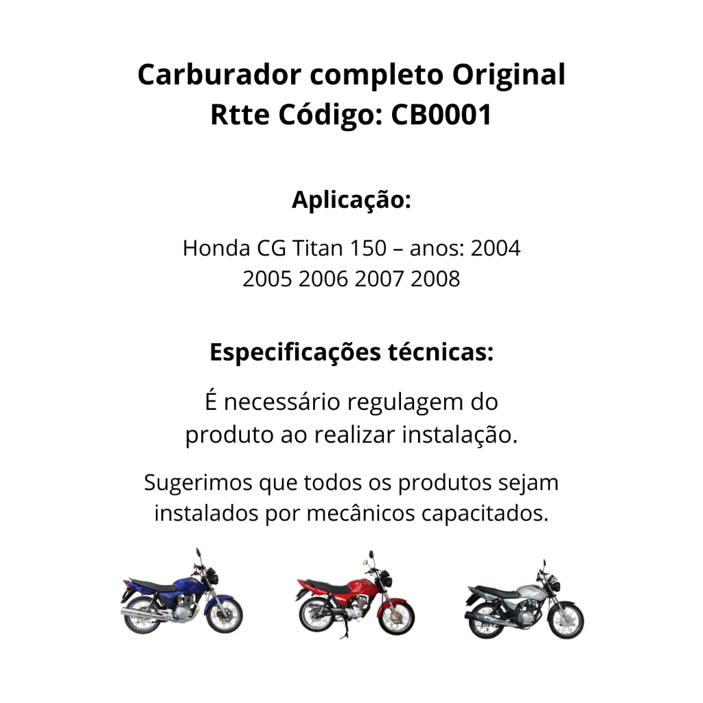 Carburador Completo Honda Titan 150 2004 2005 2006 2007 2008