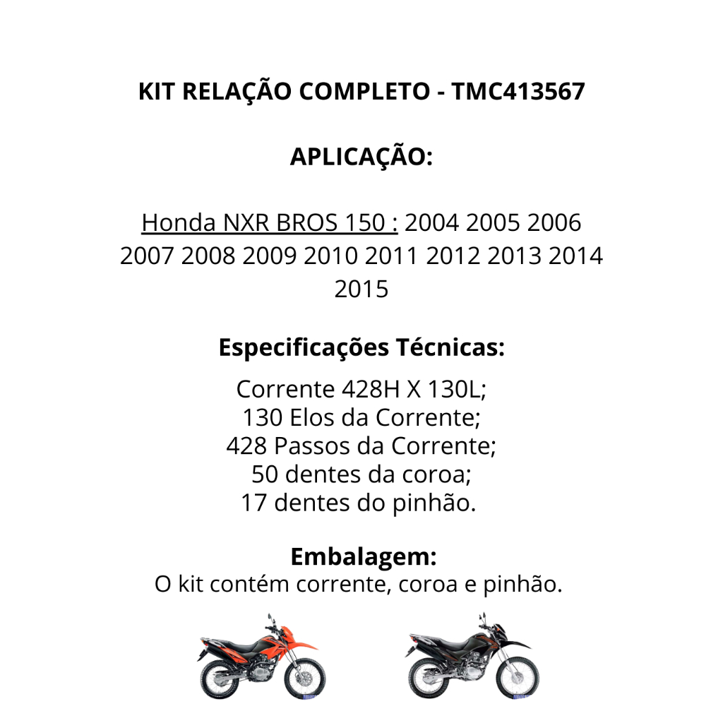 Kit Relação Transmissão Bros 150 2004 2005 2006 2007 2008 2009 2010 2011 2012 2013 2014 2015 Cofap