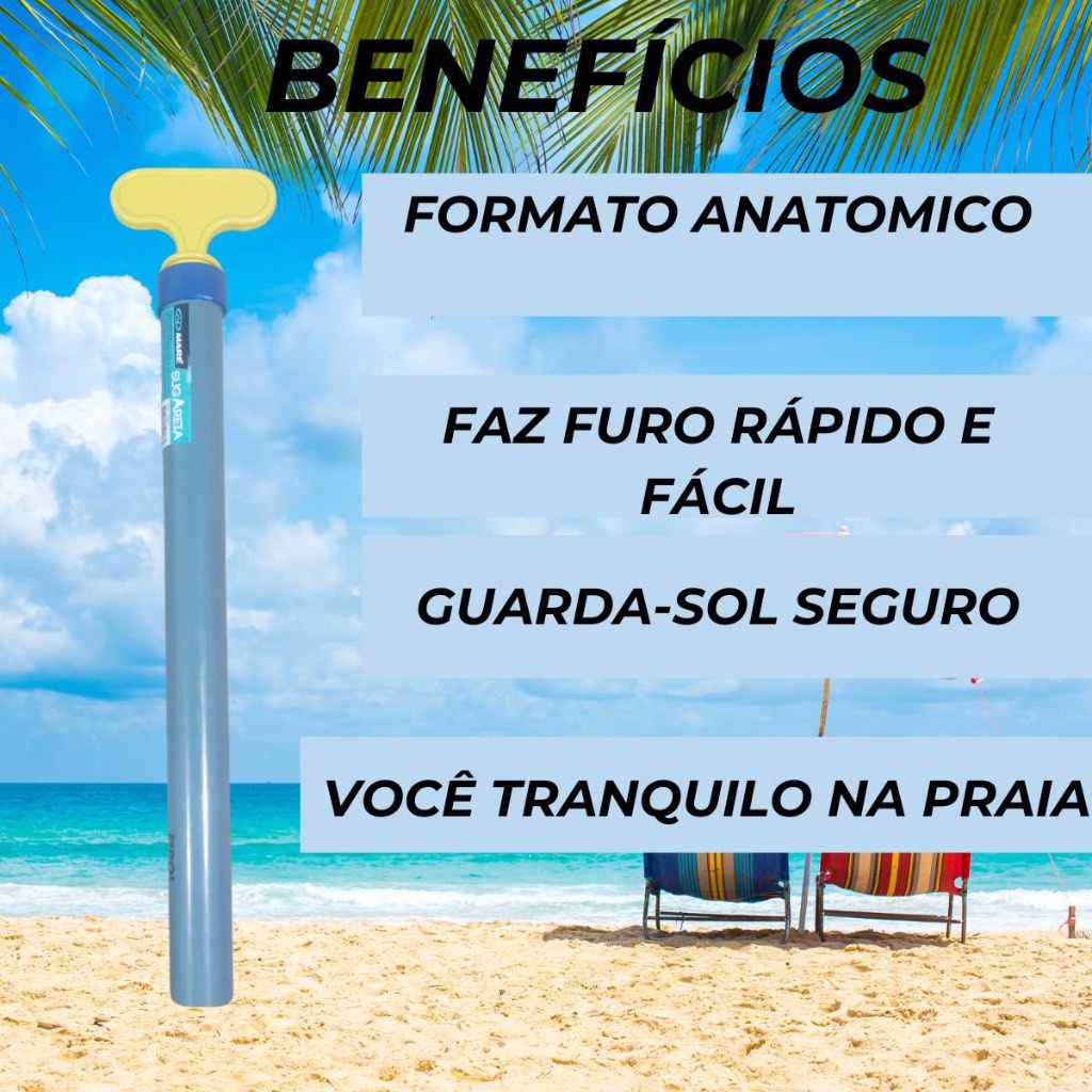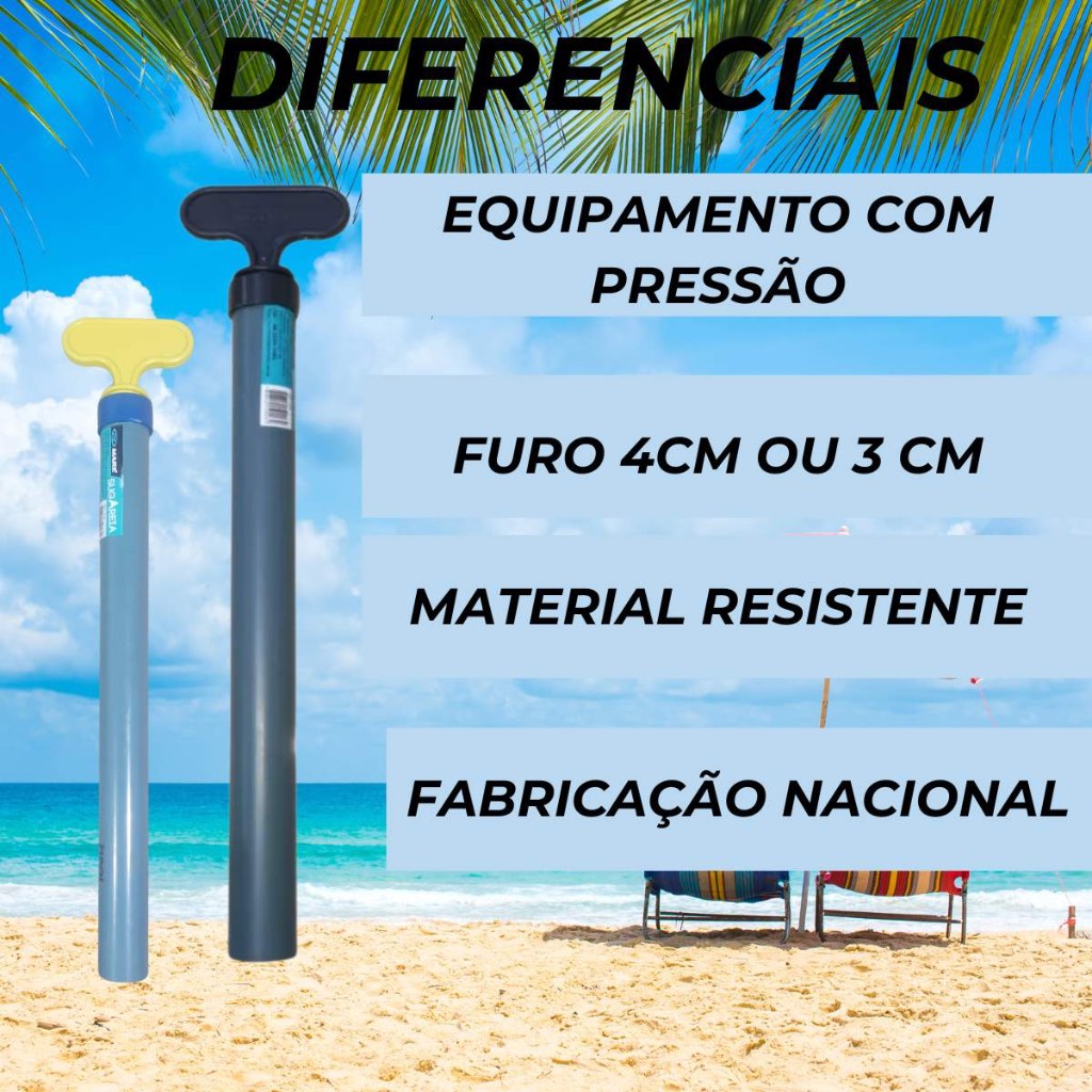 Furador de Areia para Guarda Sol Maré c/Presão Saca Areia Guarda Sol Praia Pressão - 2 TAMANHOS