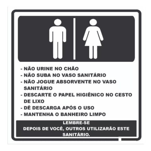 Placa Sinalização Higiene Regras Utilização Banheiro Unissex Regras de Higiene Banheiro Organizaçao