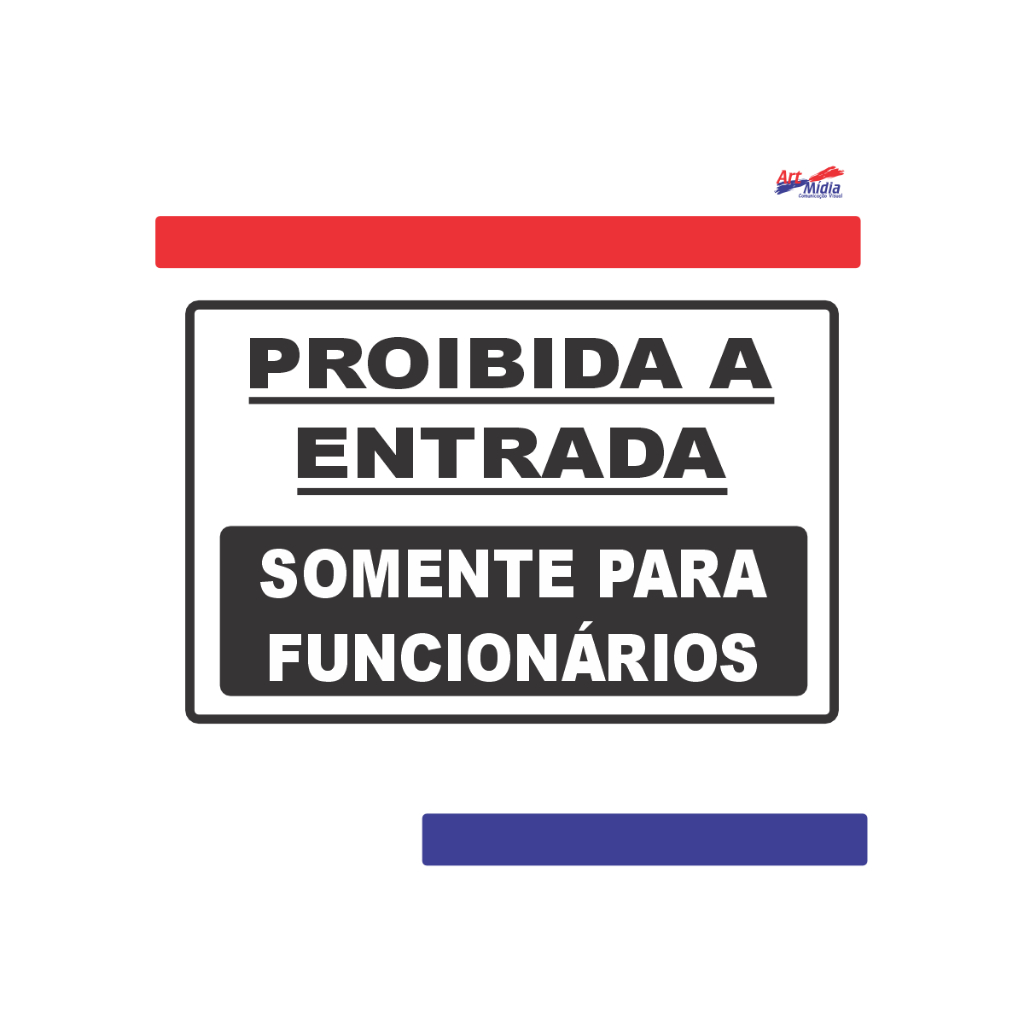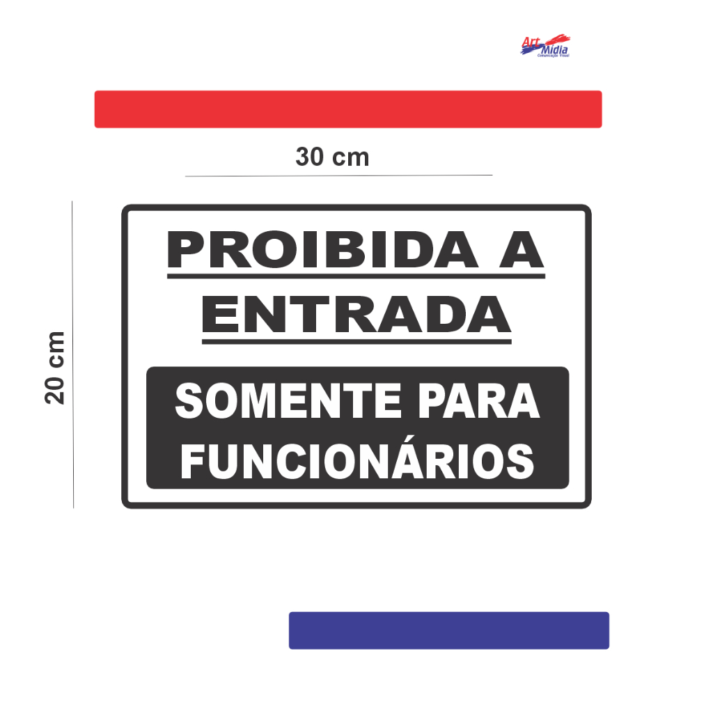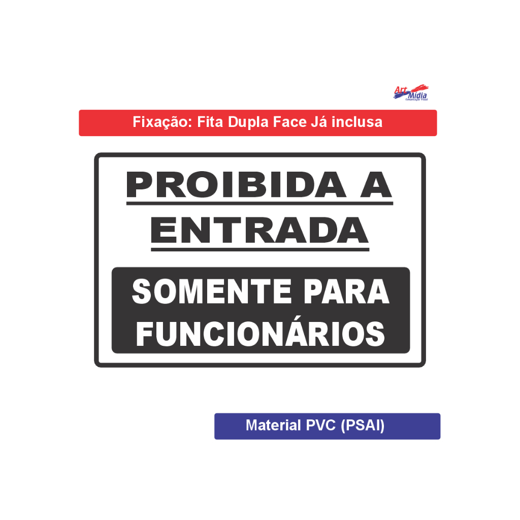 Placa Proibida A Entrada Somente Para Funcionários 30x20 Resistente PS 1mm com Fita 3M