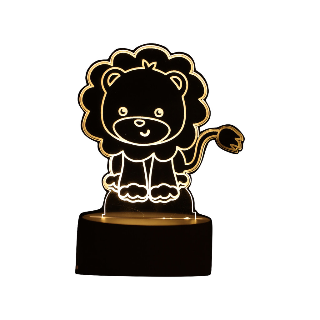 Luminária 3D Led Infantil Leão Safari Abajur de Mesa Criança Luz Noturna Aconchegante Com Cabo USB