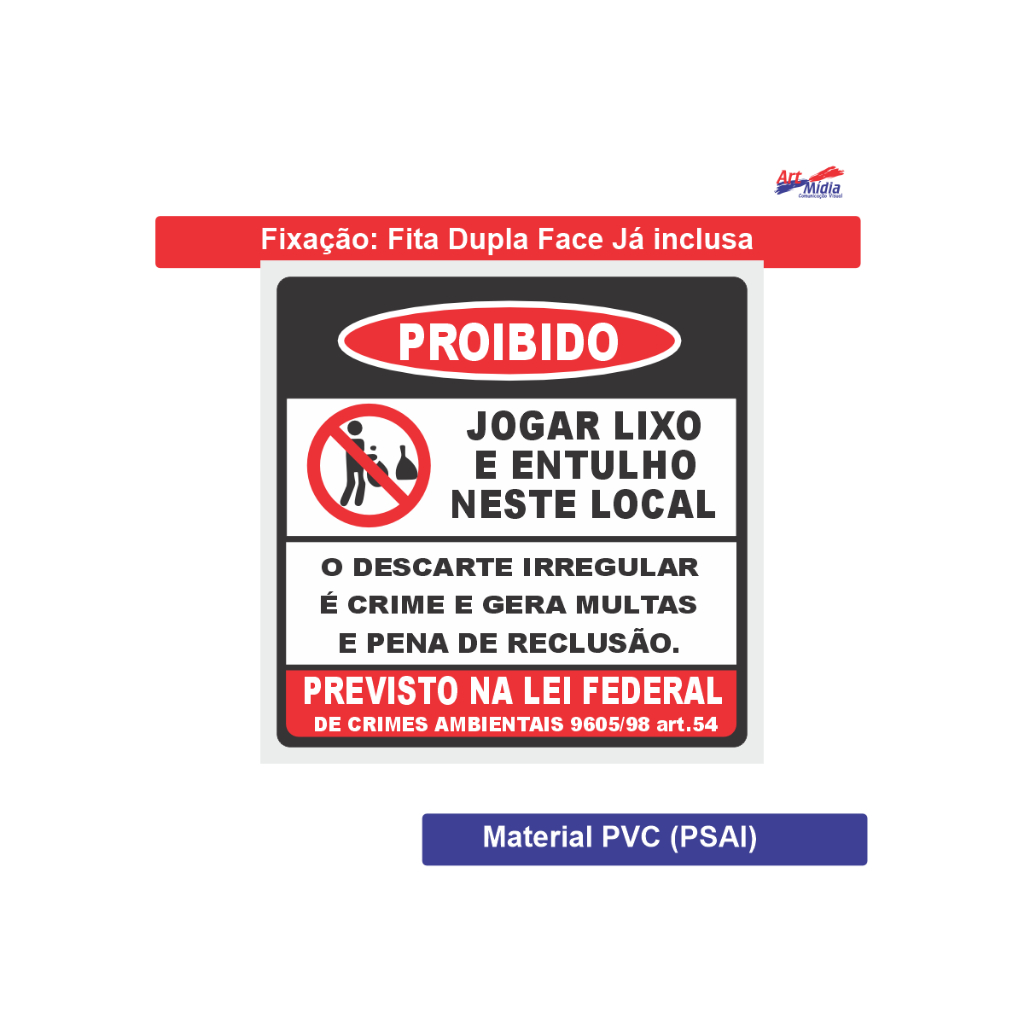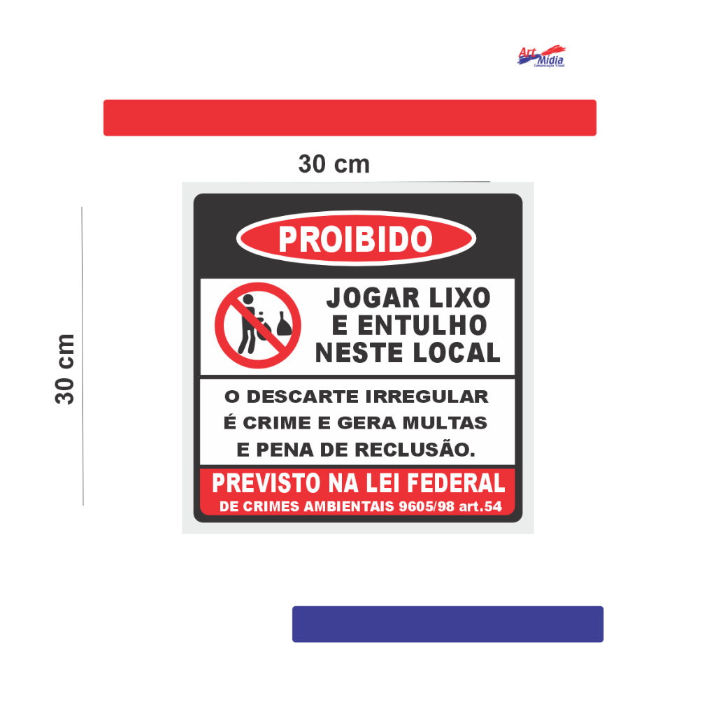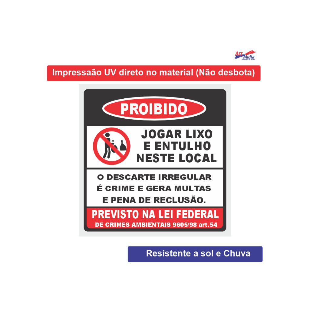 Placa Proibido Jogar Lixo E Entulho Neste Local Com Lei Federal Resistente Para Uso Externo 30x30cm