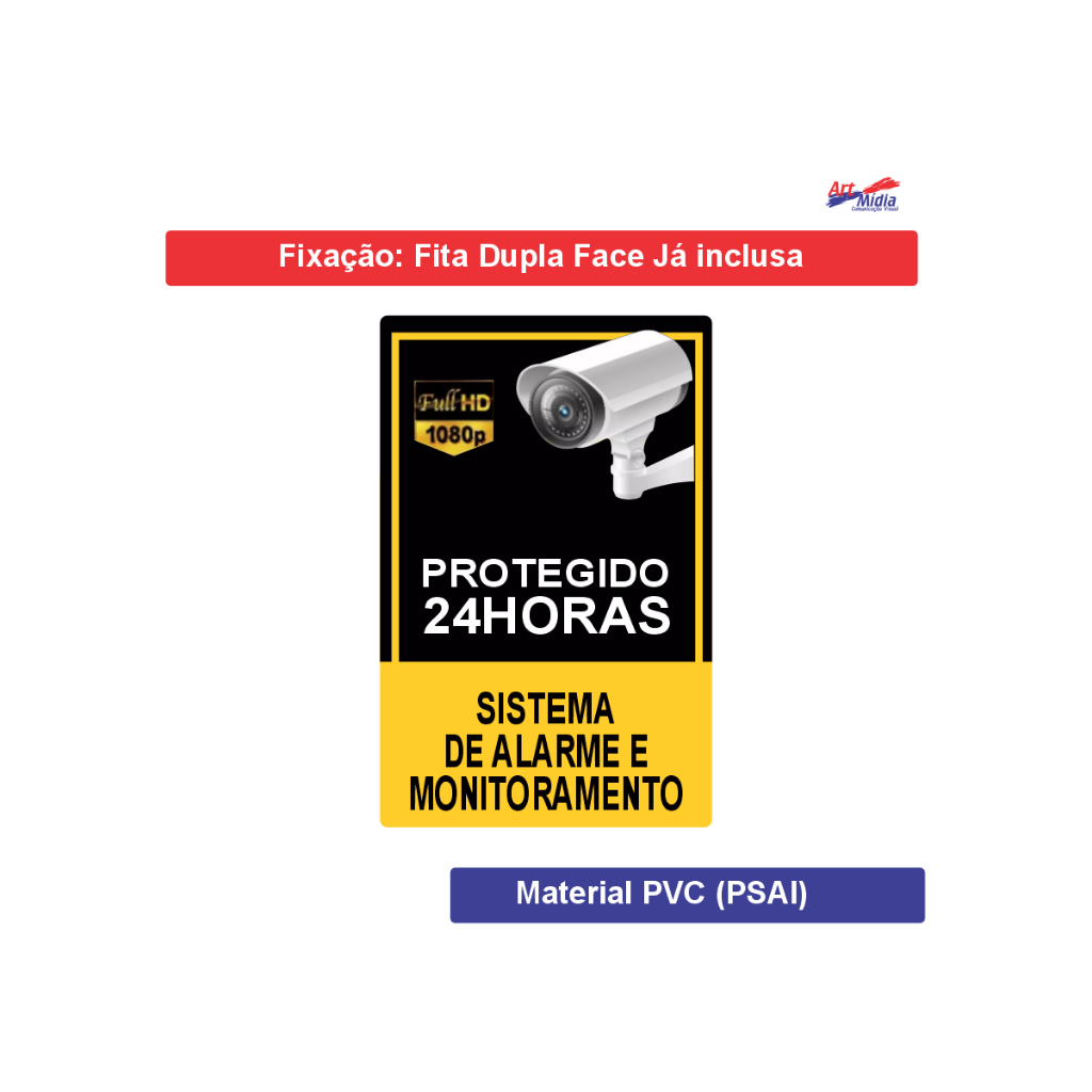 Placa De Segurança Alarme E Monitoramento Protegido 24 Horas 20x30 Resistente Alta Qualidade