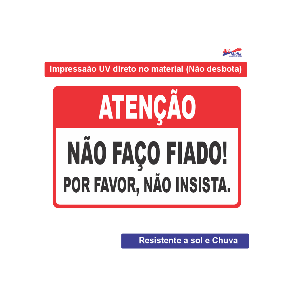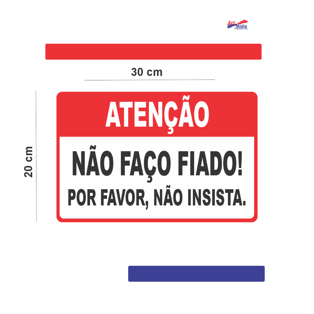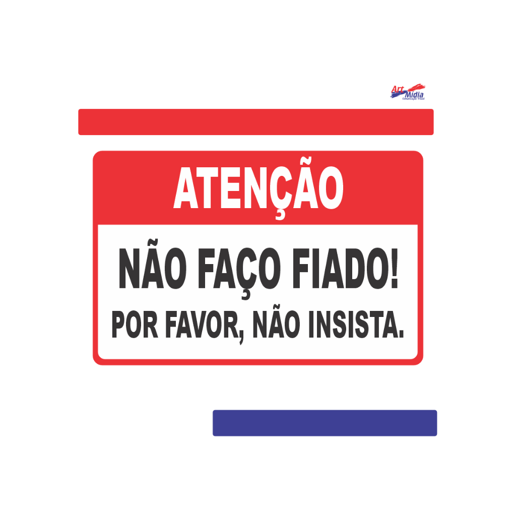 Placa de Sinalizaçao Não Faço Fiado 30x20cm Resistente PS 1mm Acompanha Fita Dupla Face