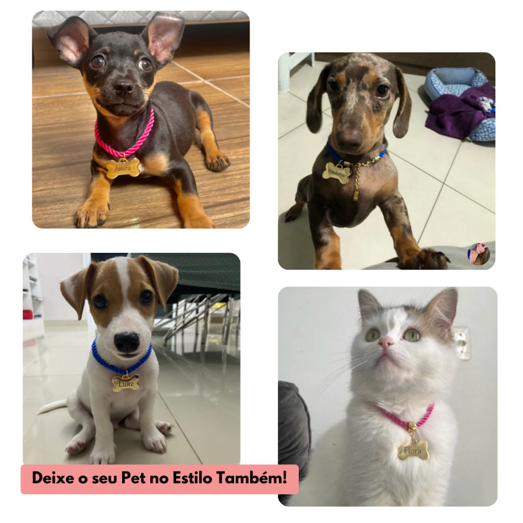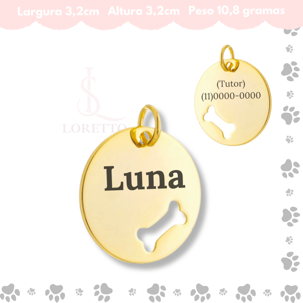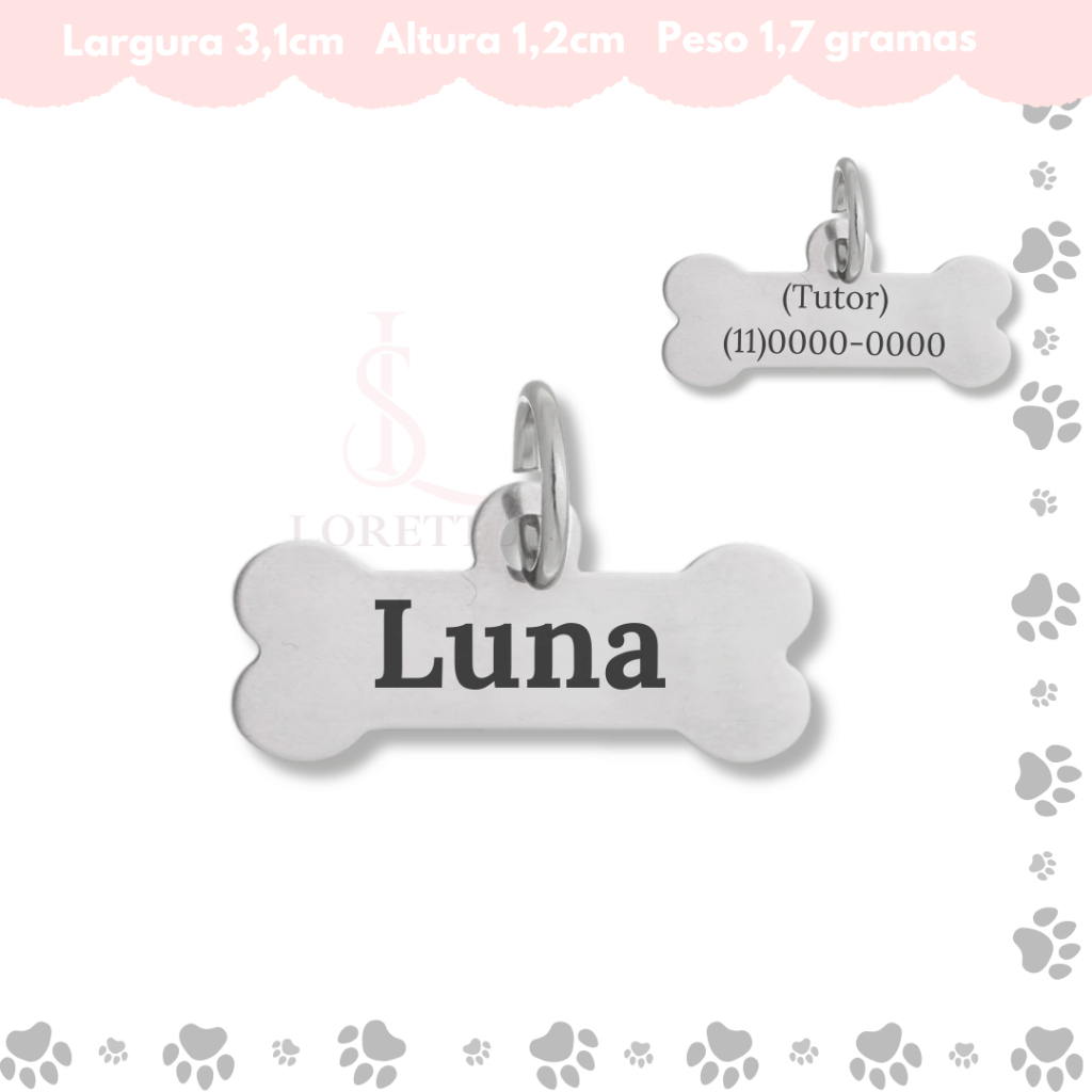 Tag de Coleira Pet Identificação Personalizado Nome e Telefone Vários Modelos
