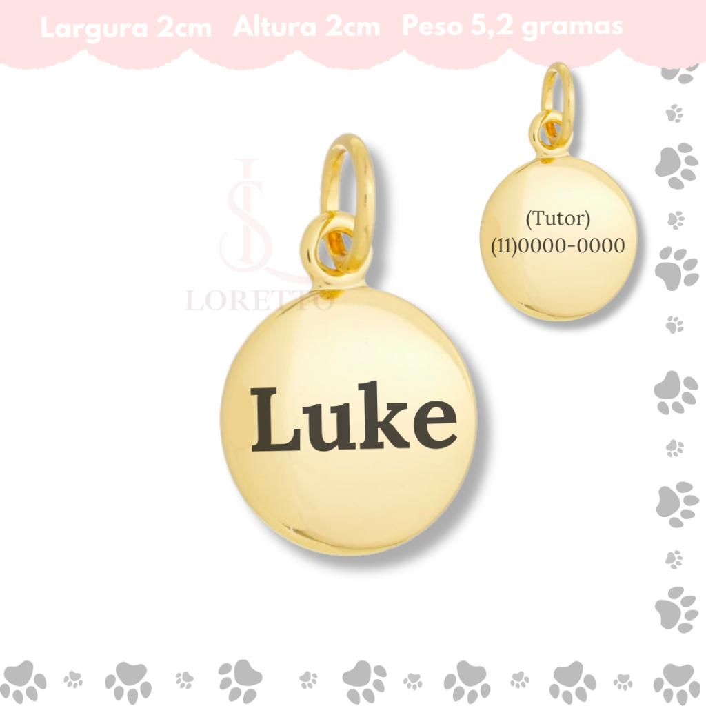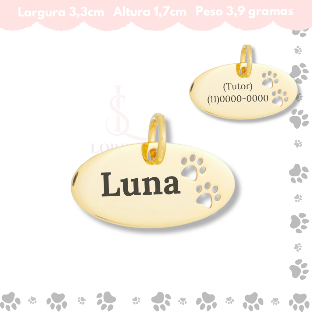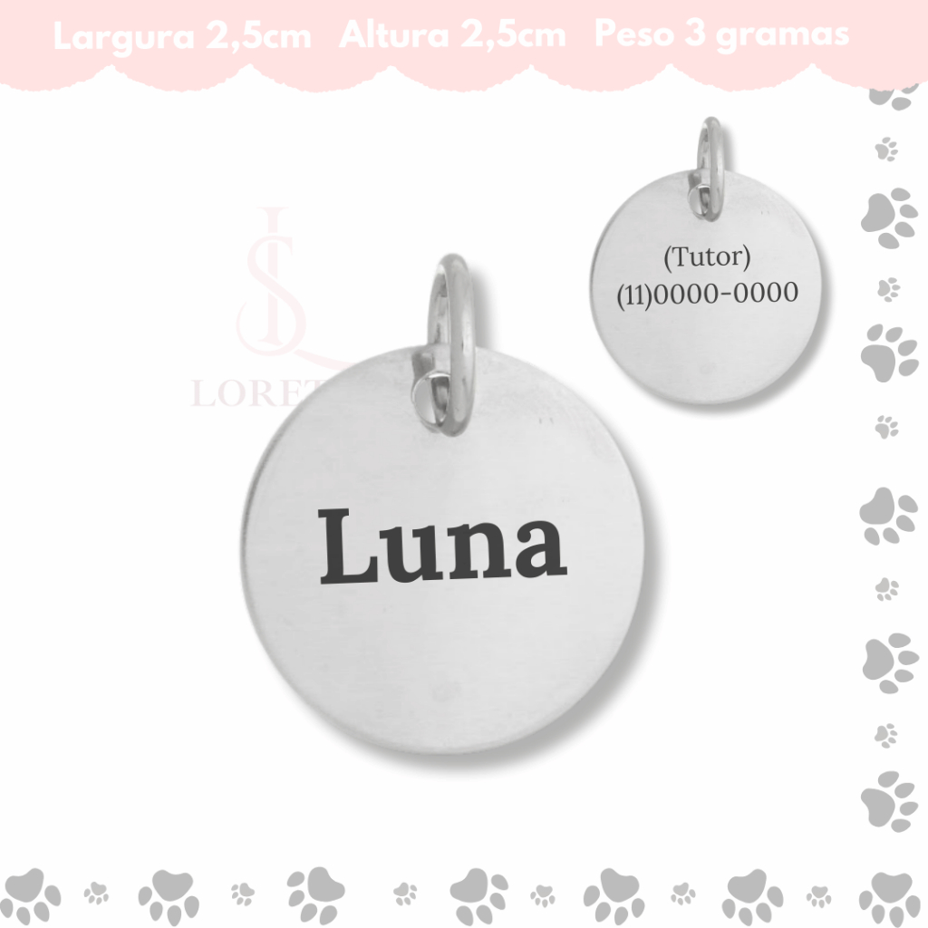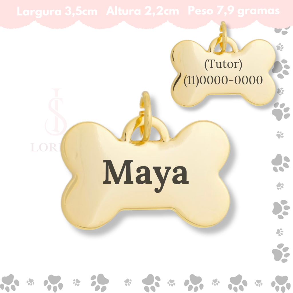 Tag de Coleira Pet Identificação Personalizado Nome e Telefone Vários Modelos