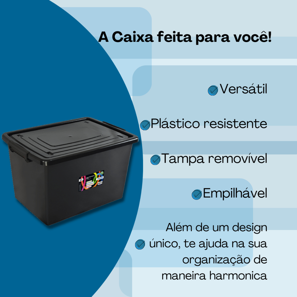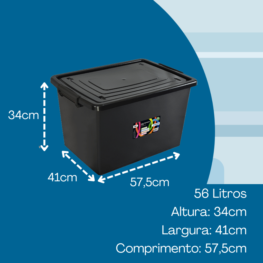 Kit 2 Caixas Organizadoras Com Tampa E Travas 56 Litros Preta Resistente e Reforçada Arqplast