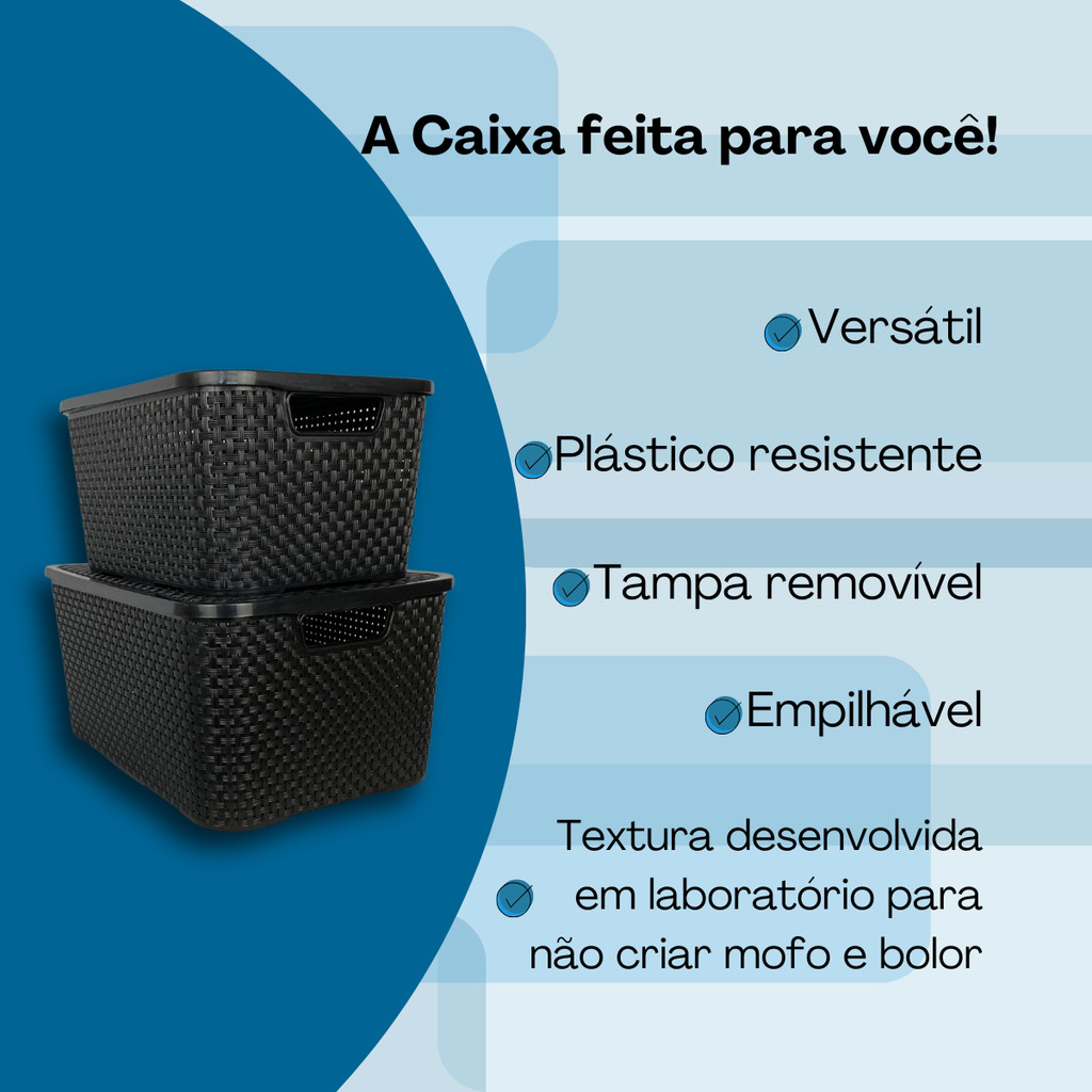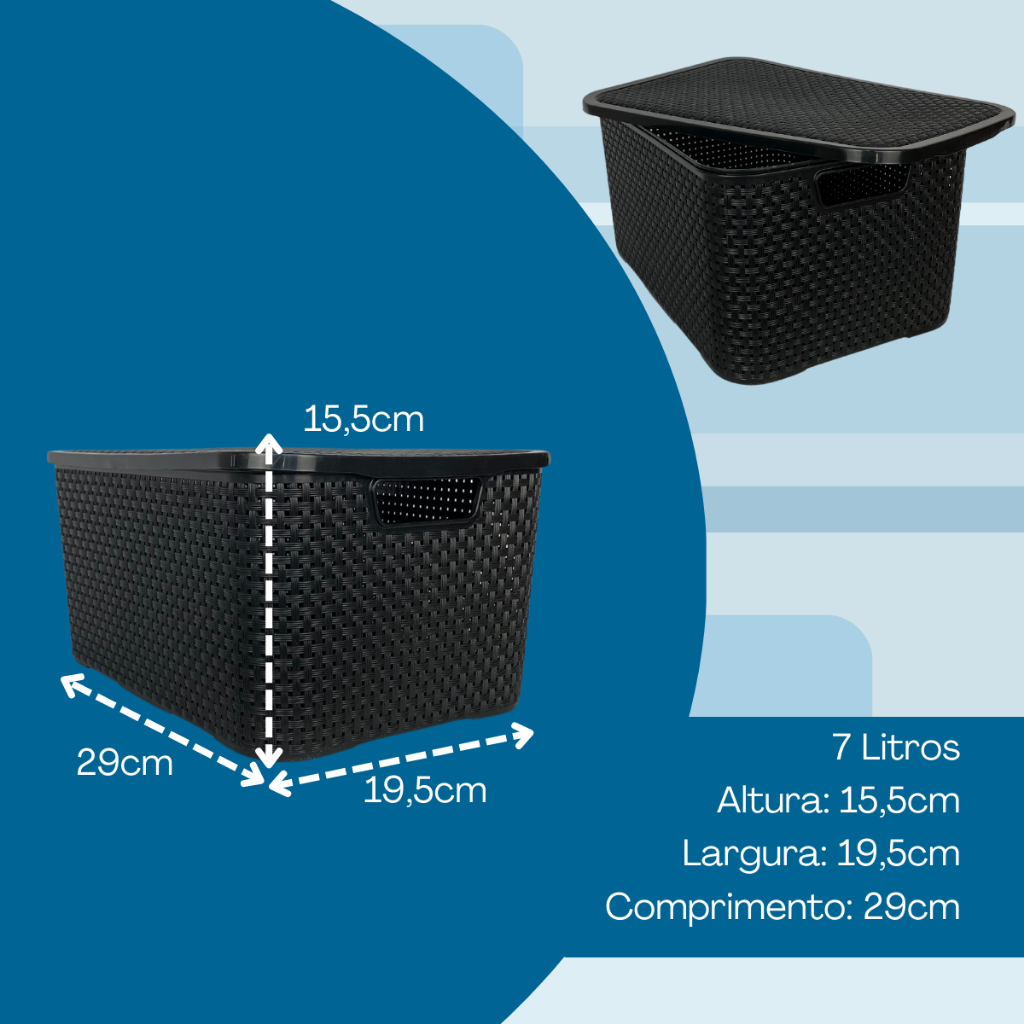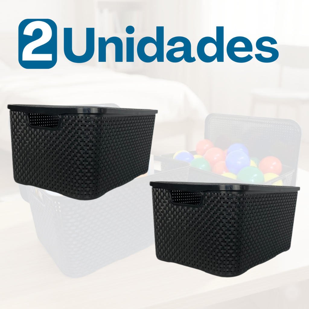 Kit Jogo De 2 Caixas Organizadoras Cesto Rattan 7 Litros Com Tampa Arqplast Para Comida Roupa
